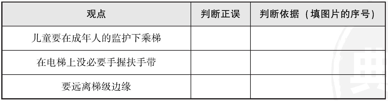 11.完成表格。(对的打“√”,错的打“×”,并找出含有相关判断依据的图片)(6分)