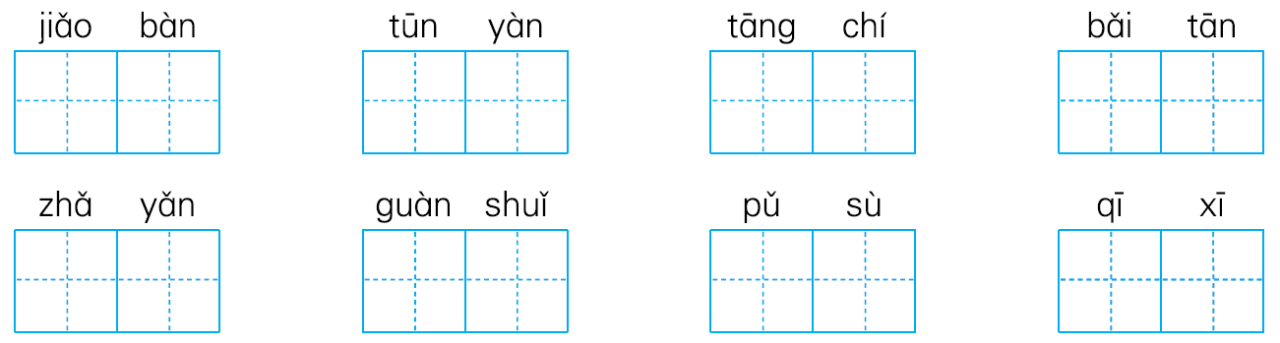 二、搅拌 吞咽 汤匙 摆摊 眨眼 灌水 朴素