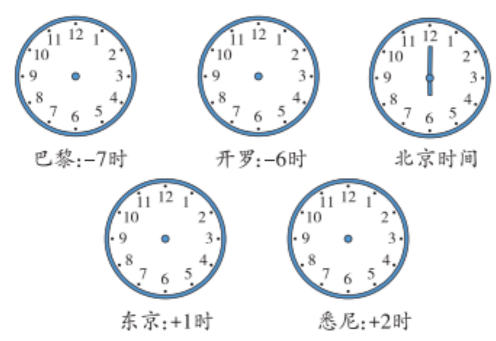 28.(6分)与北京时间相比,比北京时间早1小时记为﹢1时,比北京时间晚1小时记为﹣1时。请根据下面的提示,画出下面地区的时间。