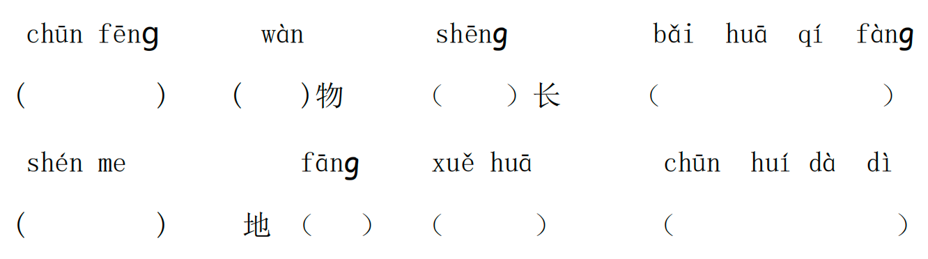 二、春风 、万 、生、百花齐放 、什么 、方、雪花、春回大地