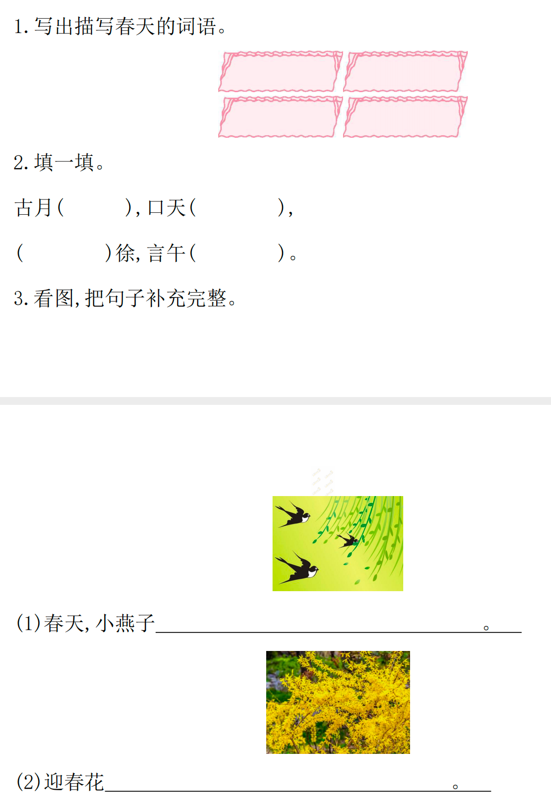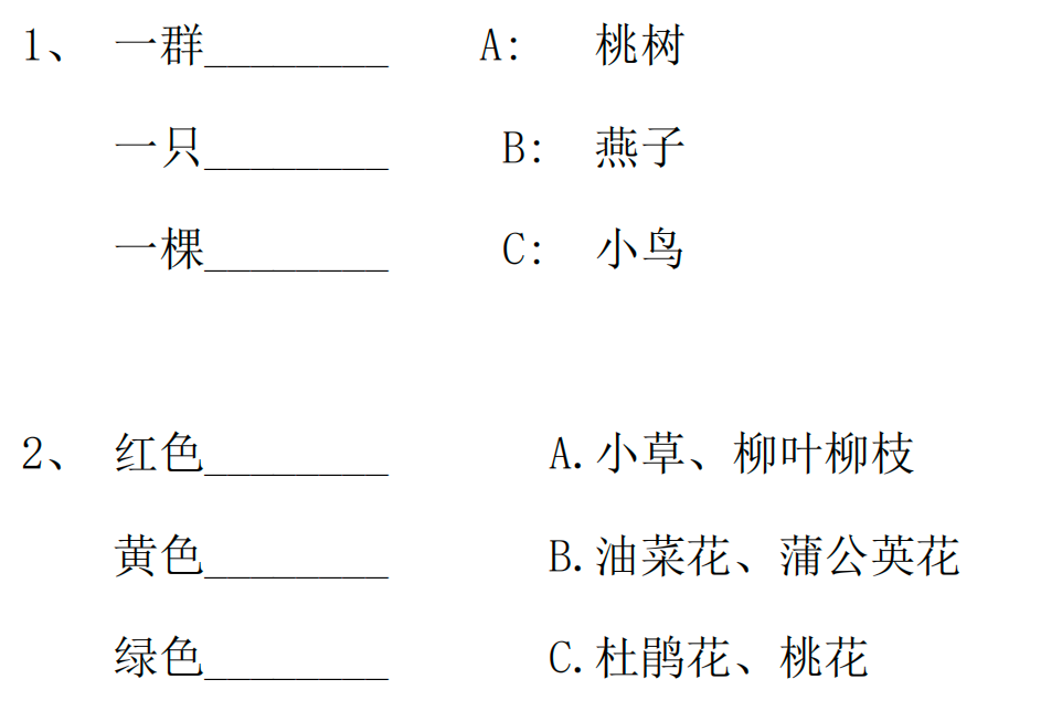 七、1.示例:春回大地、百花齐放、百鸟争鸣、 泉水叮咚