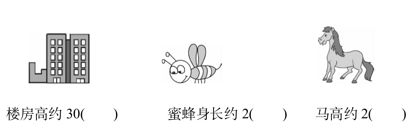 7.测量笔盒的宽用( )作单位,测量教室的长用( )作单位。