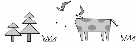 1.在小兔子左边2厘米处画一根萝卜,右边4厘米处画一朵小花。(6分)