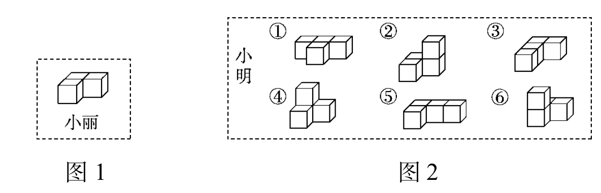 3.如图,再添一个同样大小的小正方体,小明就把小丽搭的积木(图1)变成了六种不同的形状(图2)。