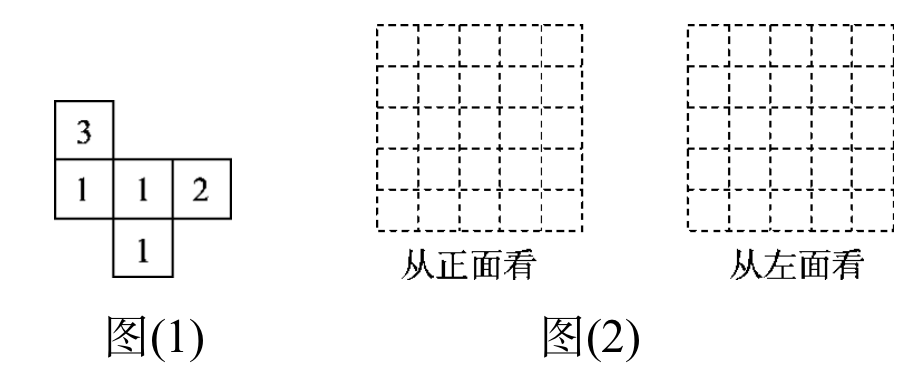 (2)如果这个几何体是由6个小正方体摆成的,在下图中相应的方格内标出小正方体的个数。(请摆出两种情况)