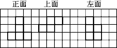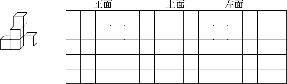四、把下面的几何体从正面、上面、左面观察到的图形在方格纸上画出来。(9分)
