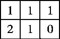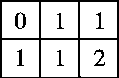 ,积木上的数表示在这个位置上所用小正方体的个数。从正面看是( ),从左面看是( )。