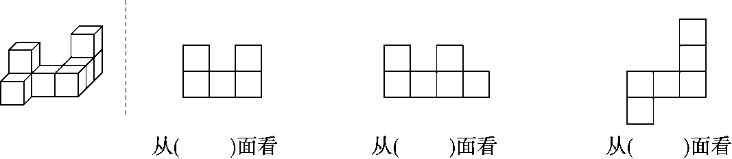 1.右边的三个图形分别是从什么方向看到的?填一填。