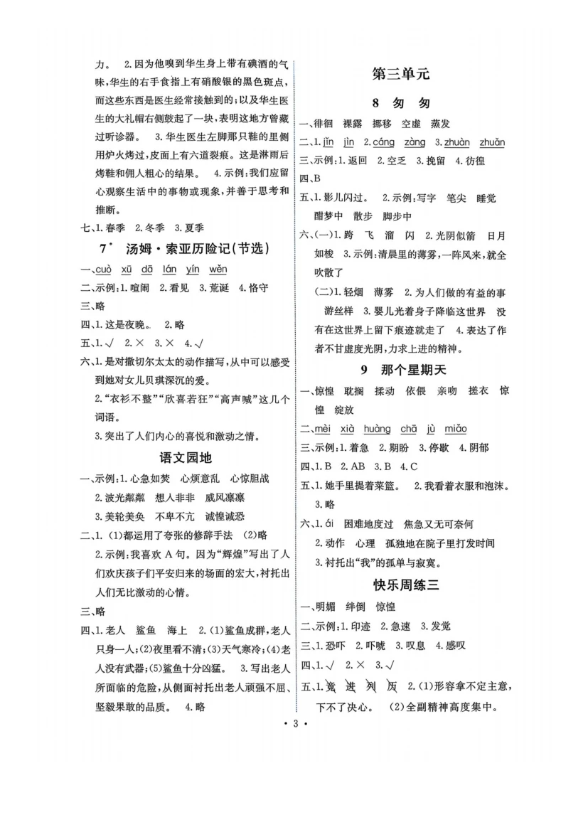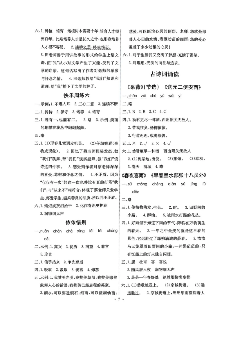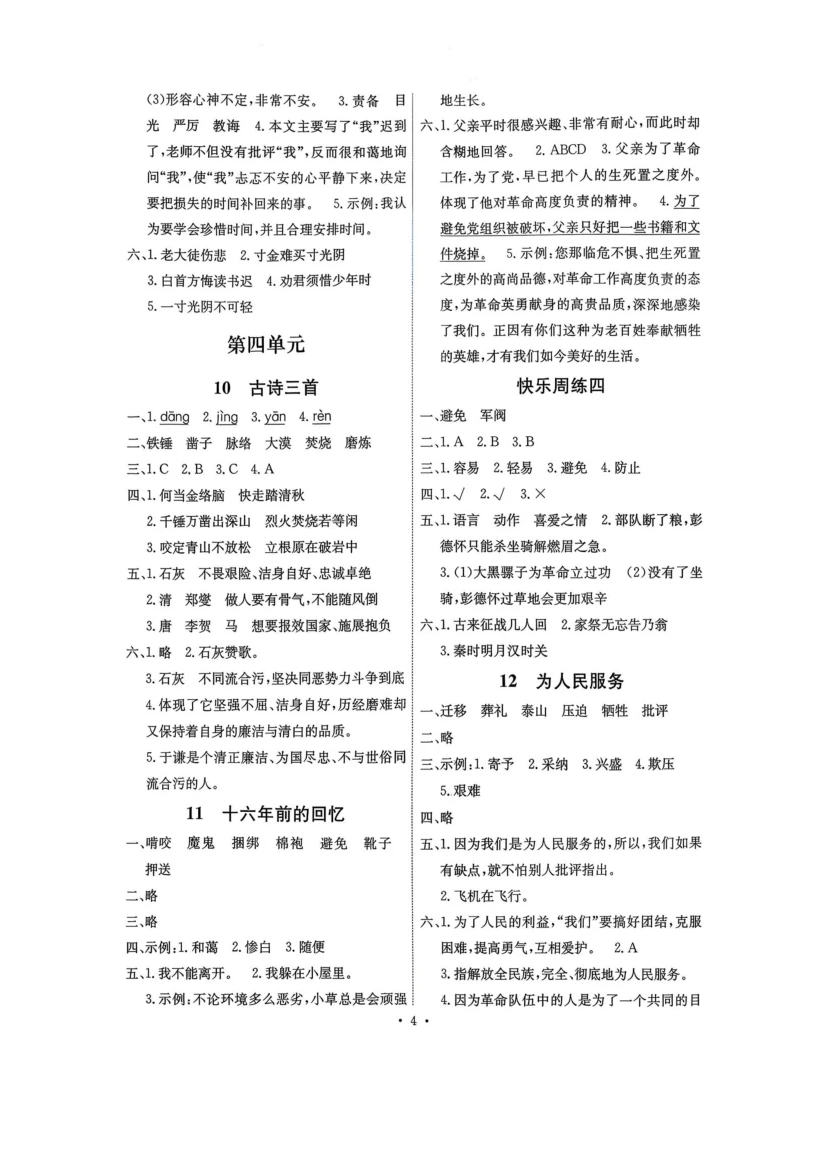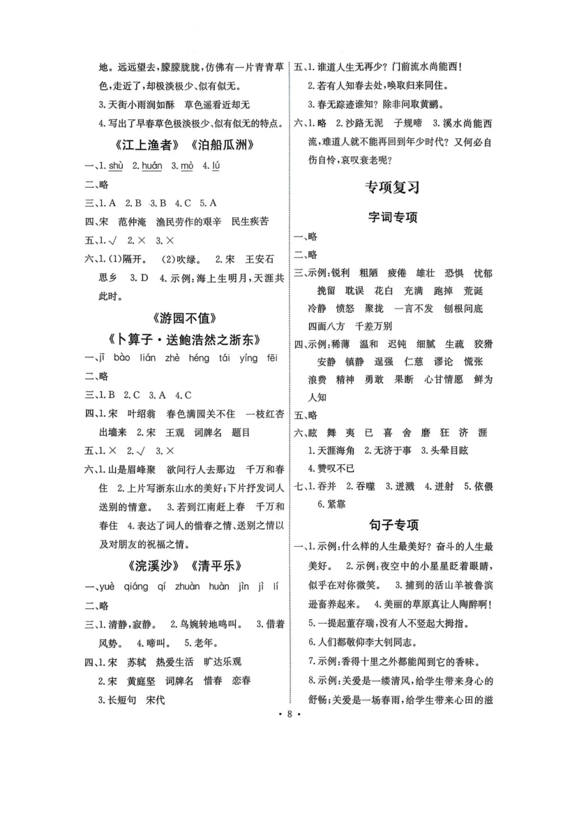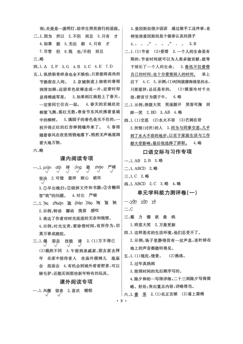 六年级下语文《能力培养与测试》答案