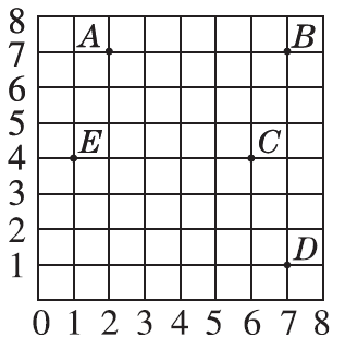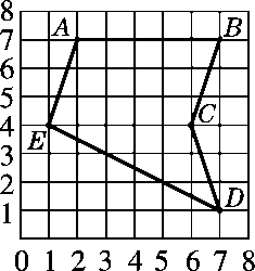 (2)按顺序(A→B→C→D→E→A)连接各点,画出围成的图形,并计算出所围图形的面积。(每个方格边长是1 cm)