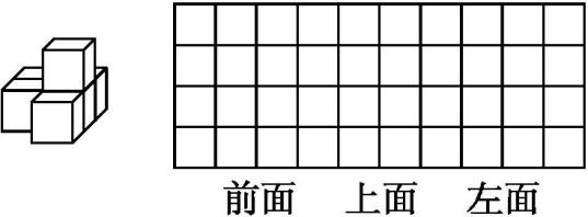 2.下面左侧的立体图形从前面、上面和左面看到的分别是什么图形?请画在方格图中。(3分)