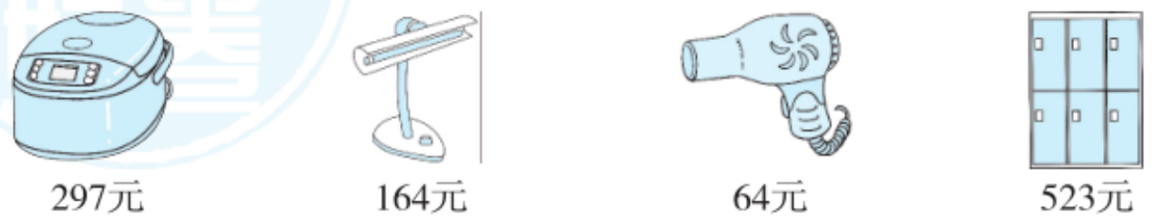 (1)一个衣柜比一个电饭锅大约贵多少钱?(4分)
