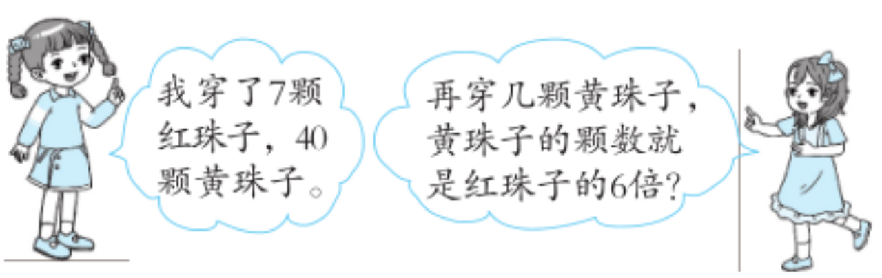 【点拨】先求出红珠子的颗数的6倍是多少,再求出还要穿几颗黄珠子。