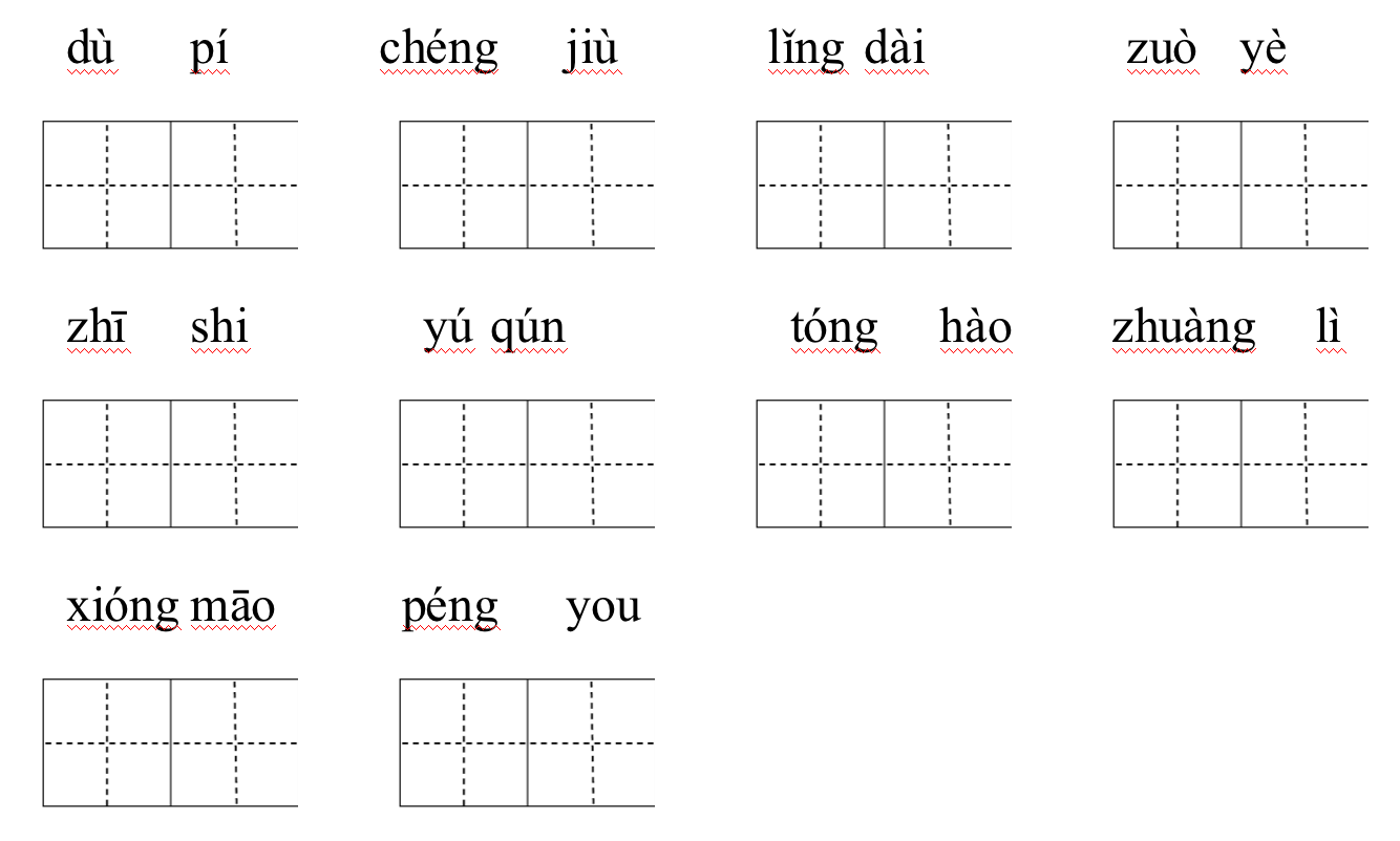 (2)填量词 一______鱼塘 一______石桥 一______秧苗