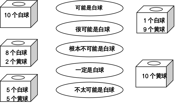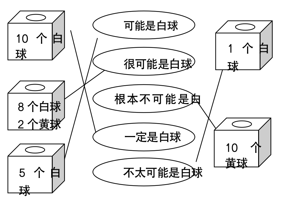 五.连一连,从下面的5个盒子里,分别摸出1个球。(每个连线1分计5分)