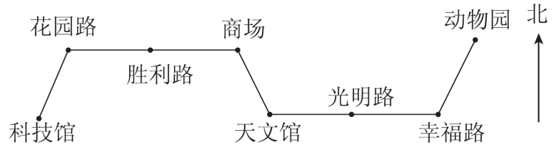 (3)商场东南(――→)天文馆东(――→)光明路东(――→)幸福路东北(――→)动物园