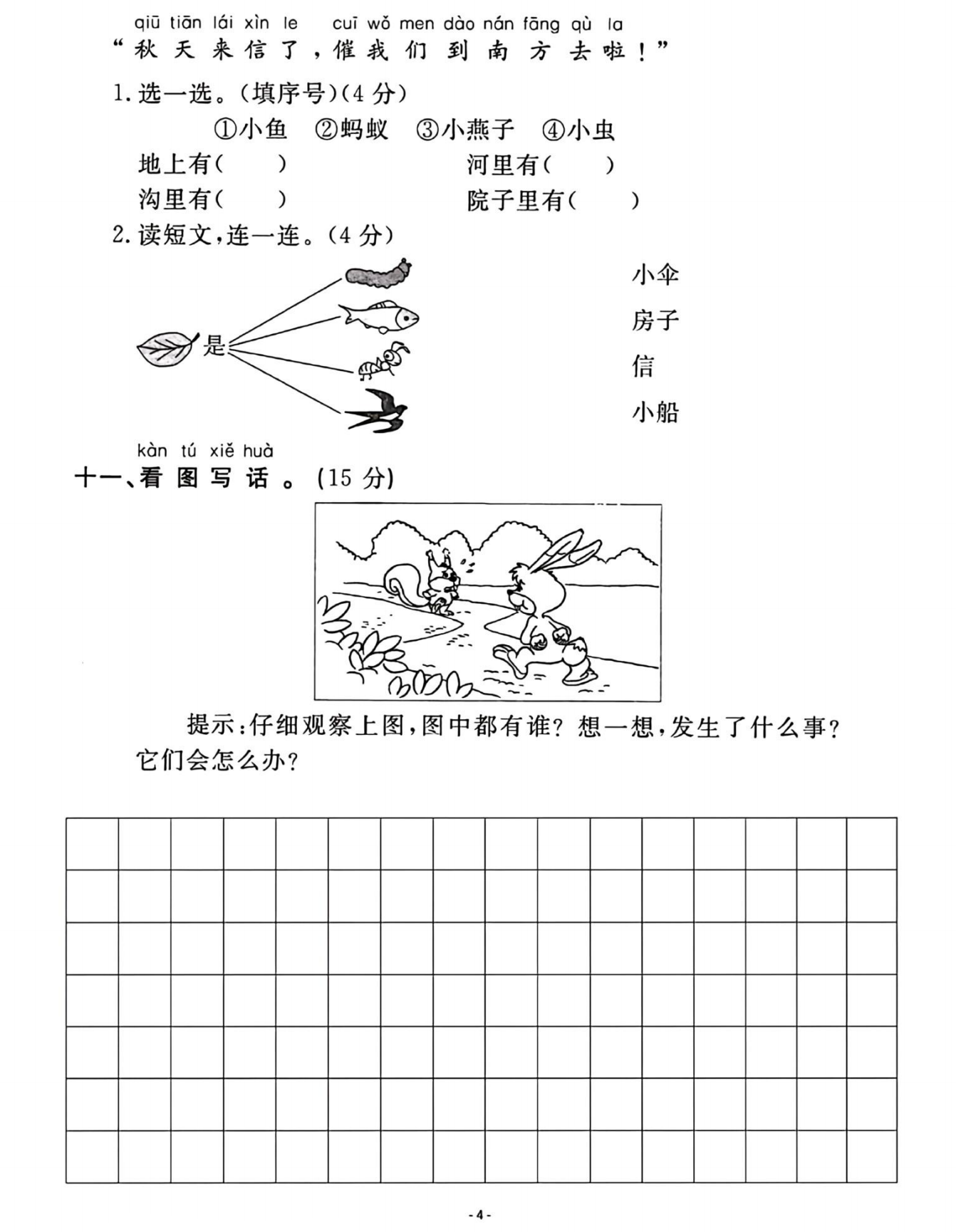 人教版一年级下册语文期中名校真题测试卷