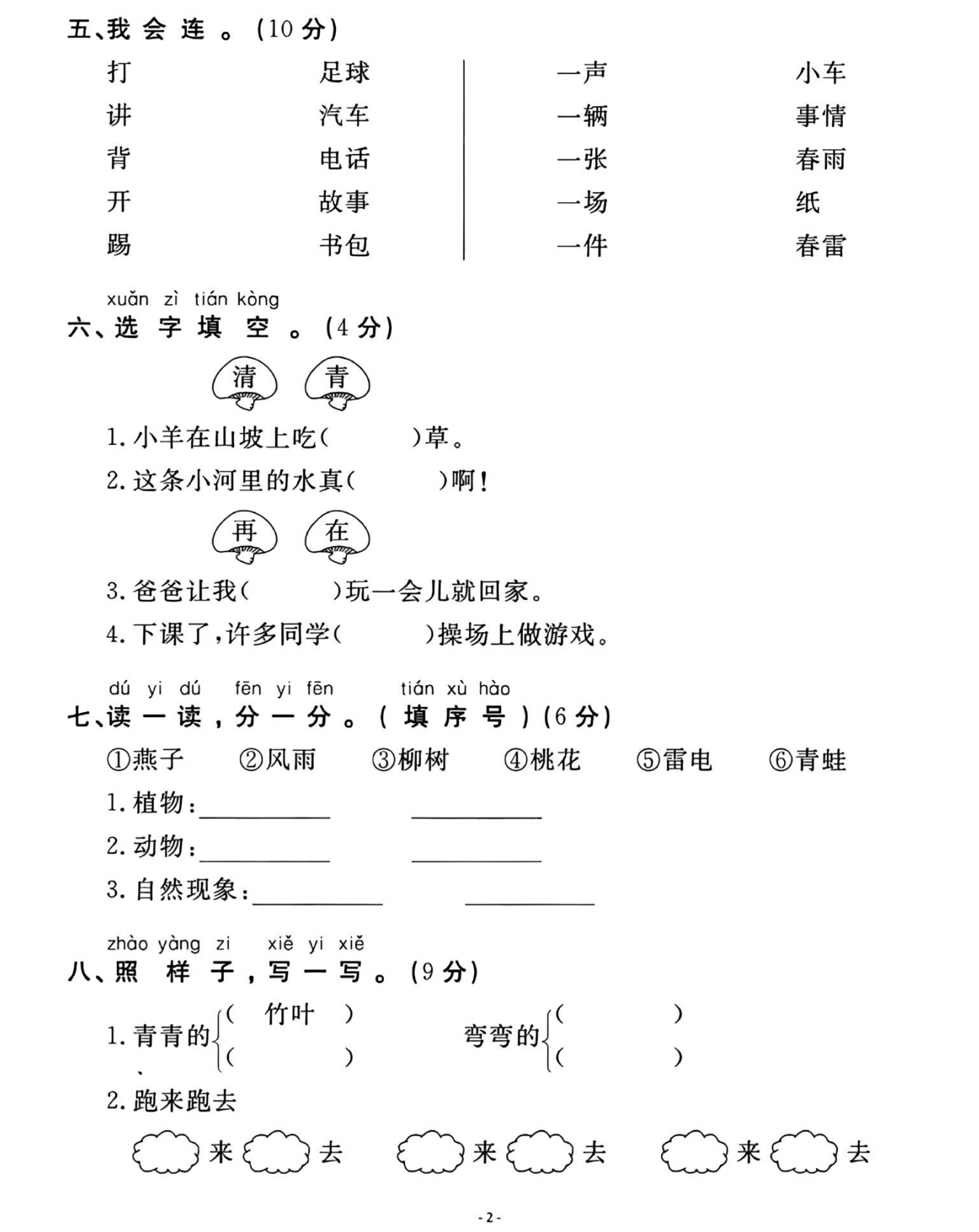 人教版一年级下册语文1-8单元通关测试