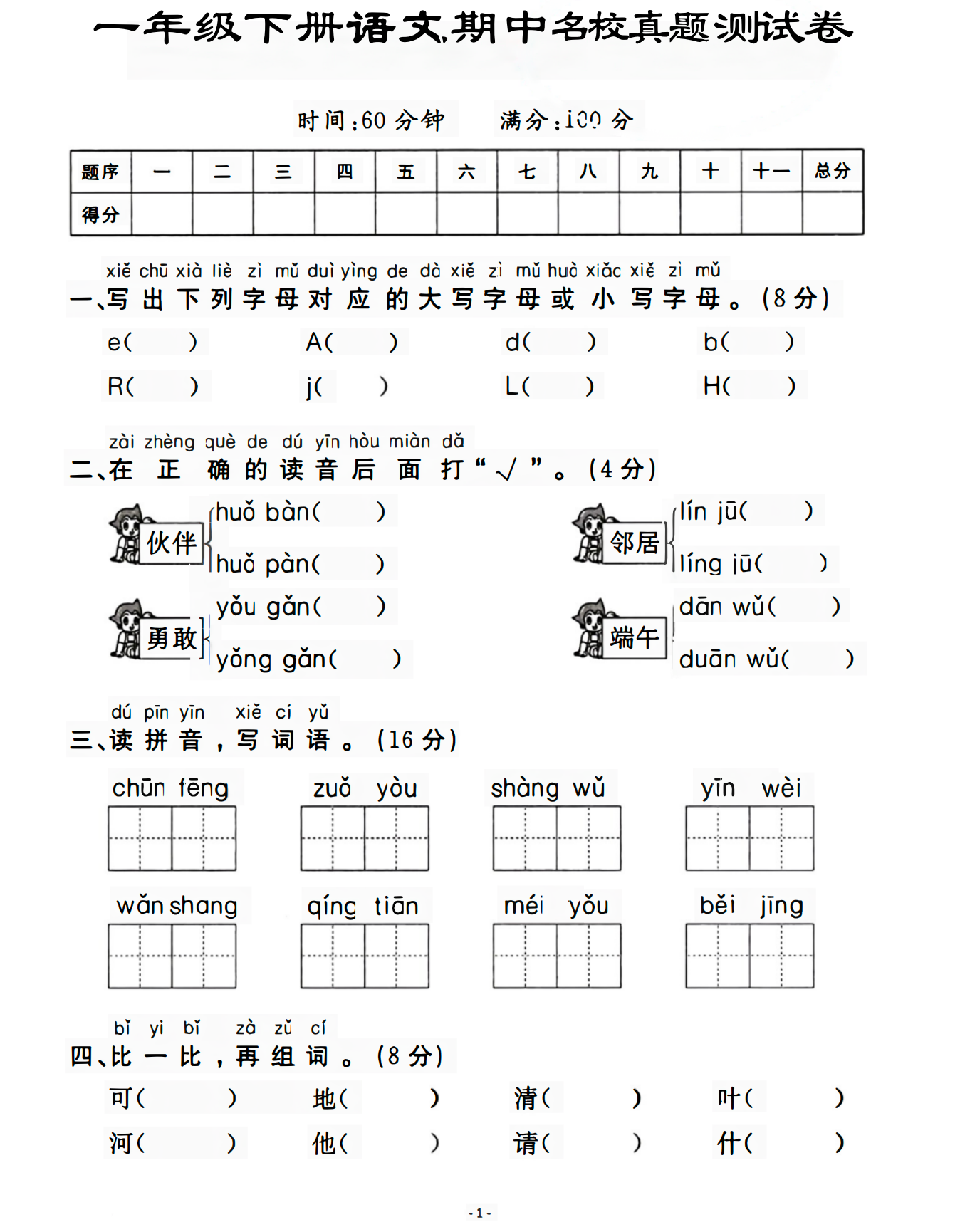 一年级(下)语文 期中名校真题测试卷.pdf