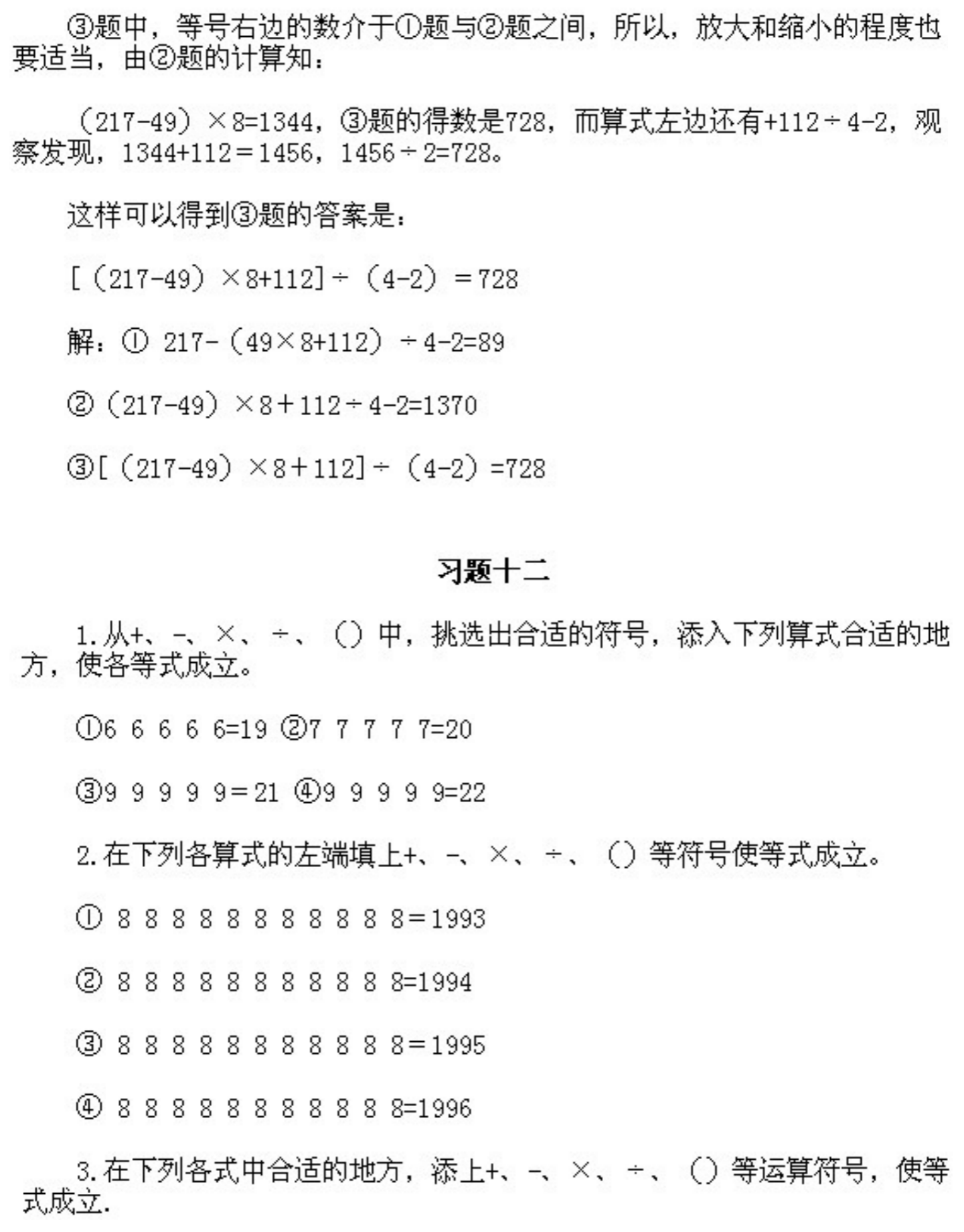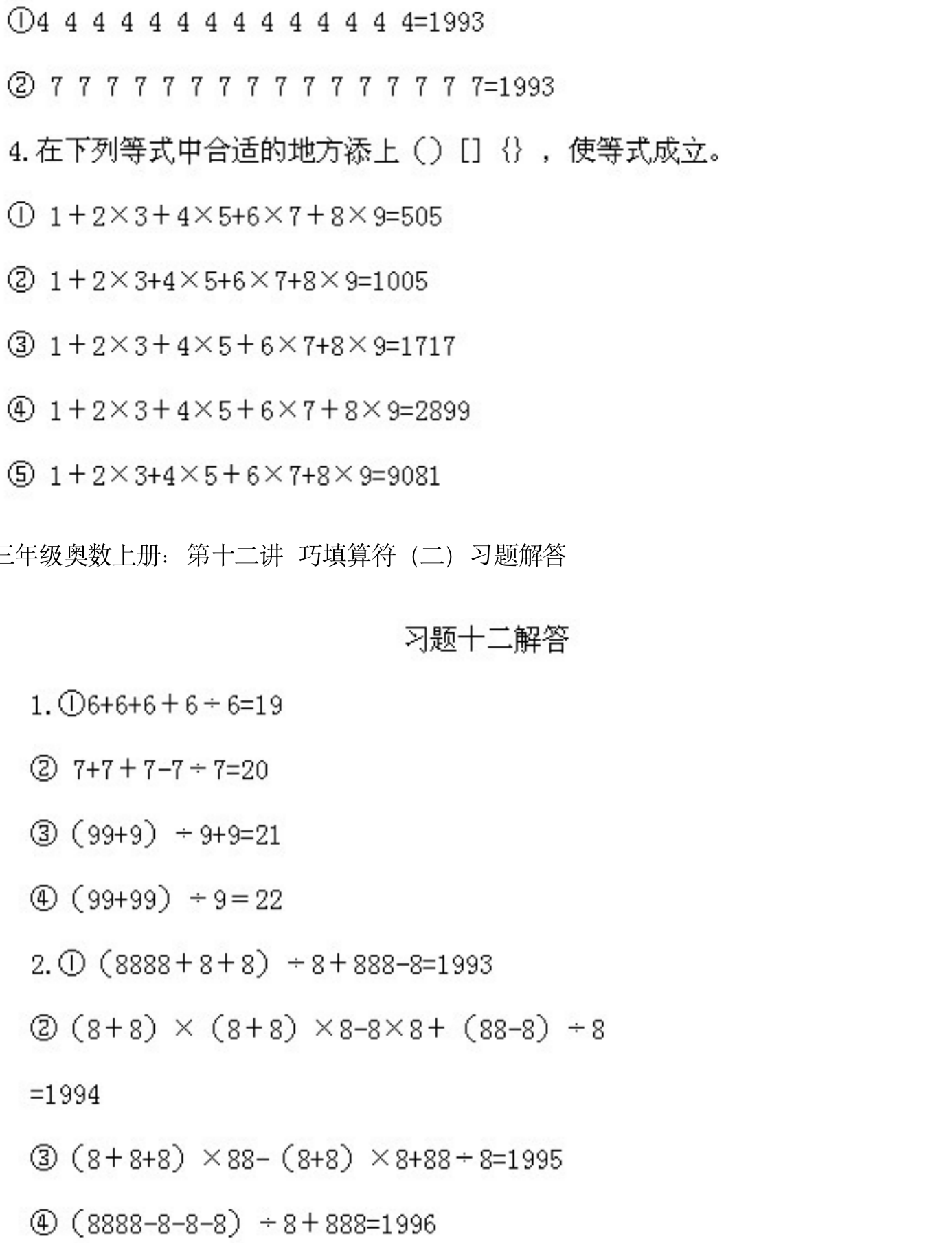 三年级上册奥数第12课《巧填算符2》&试题