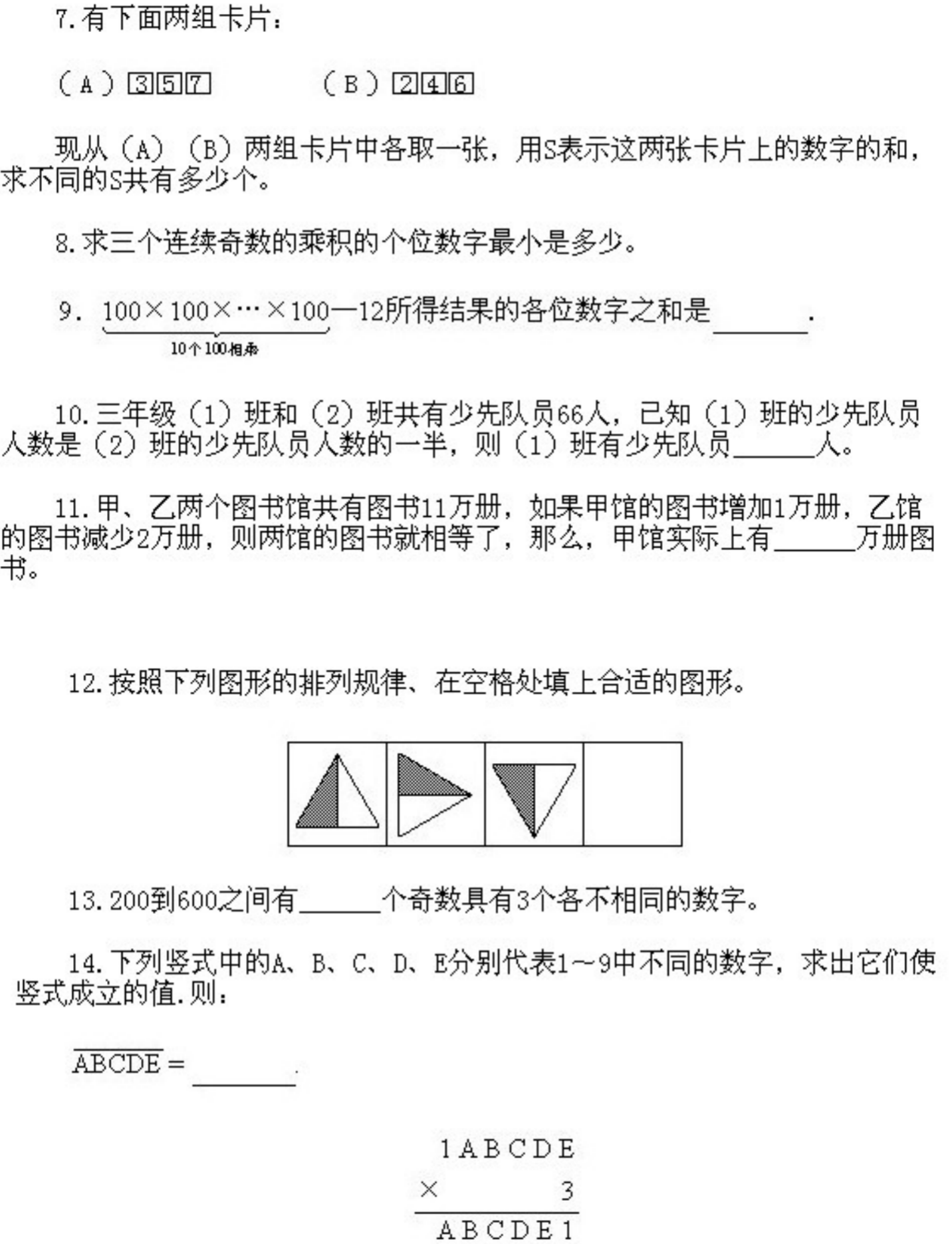 三年级上册奥数第14课《综合练习题》&试题