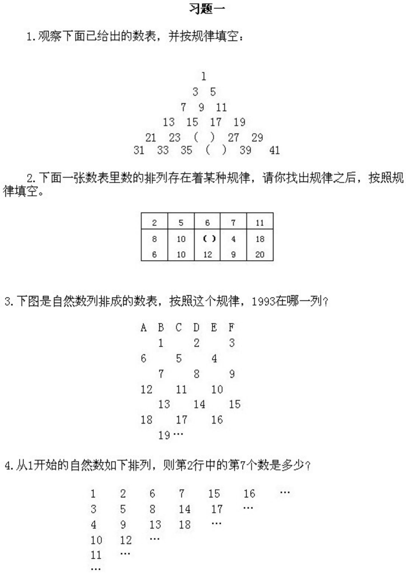 三年级下册奥数第1课《从数表中找规律》&试题