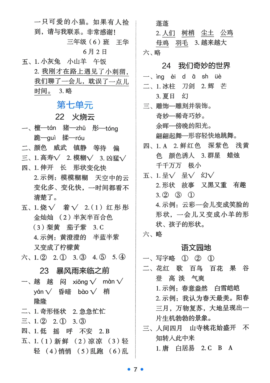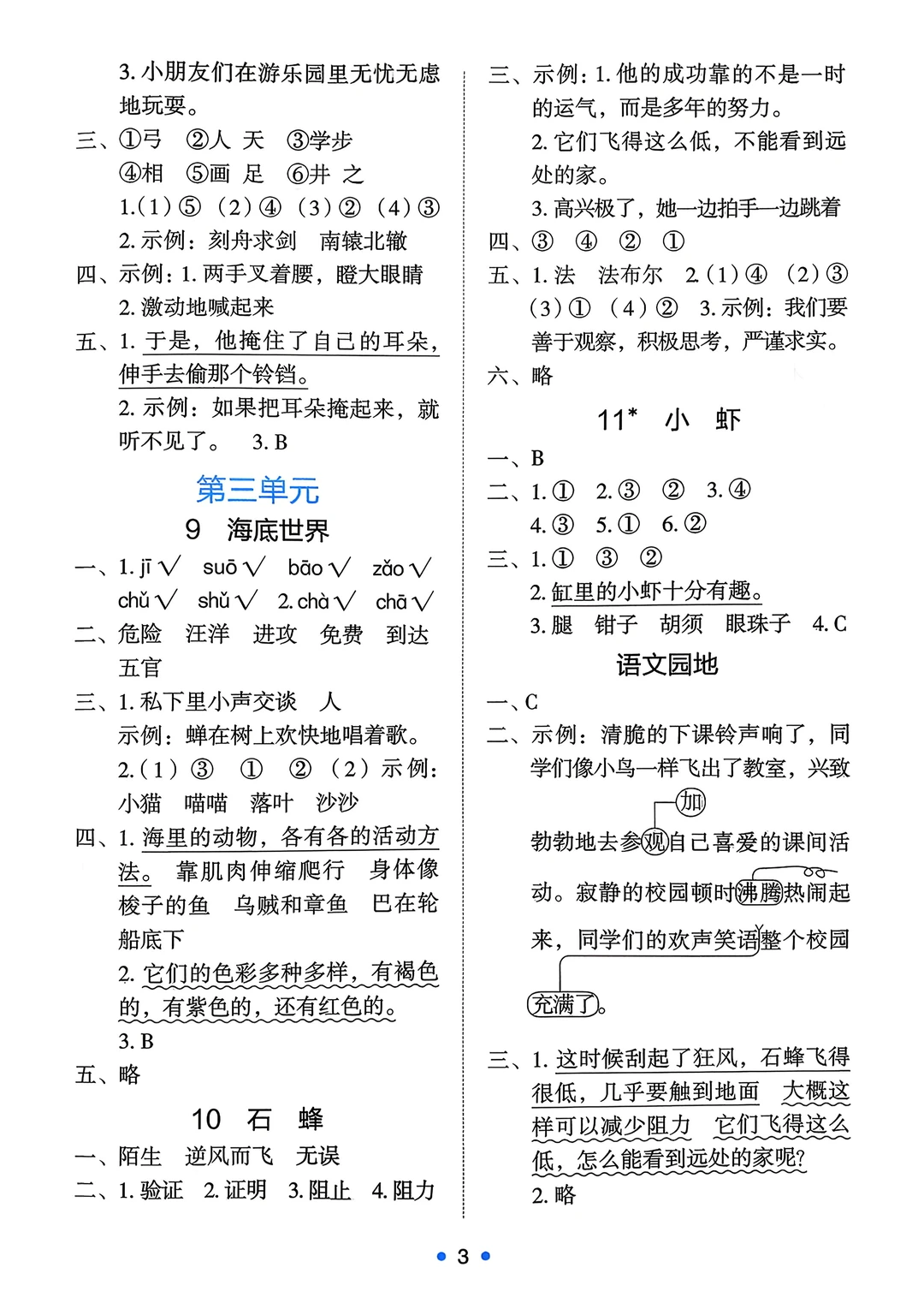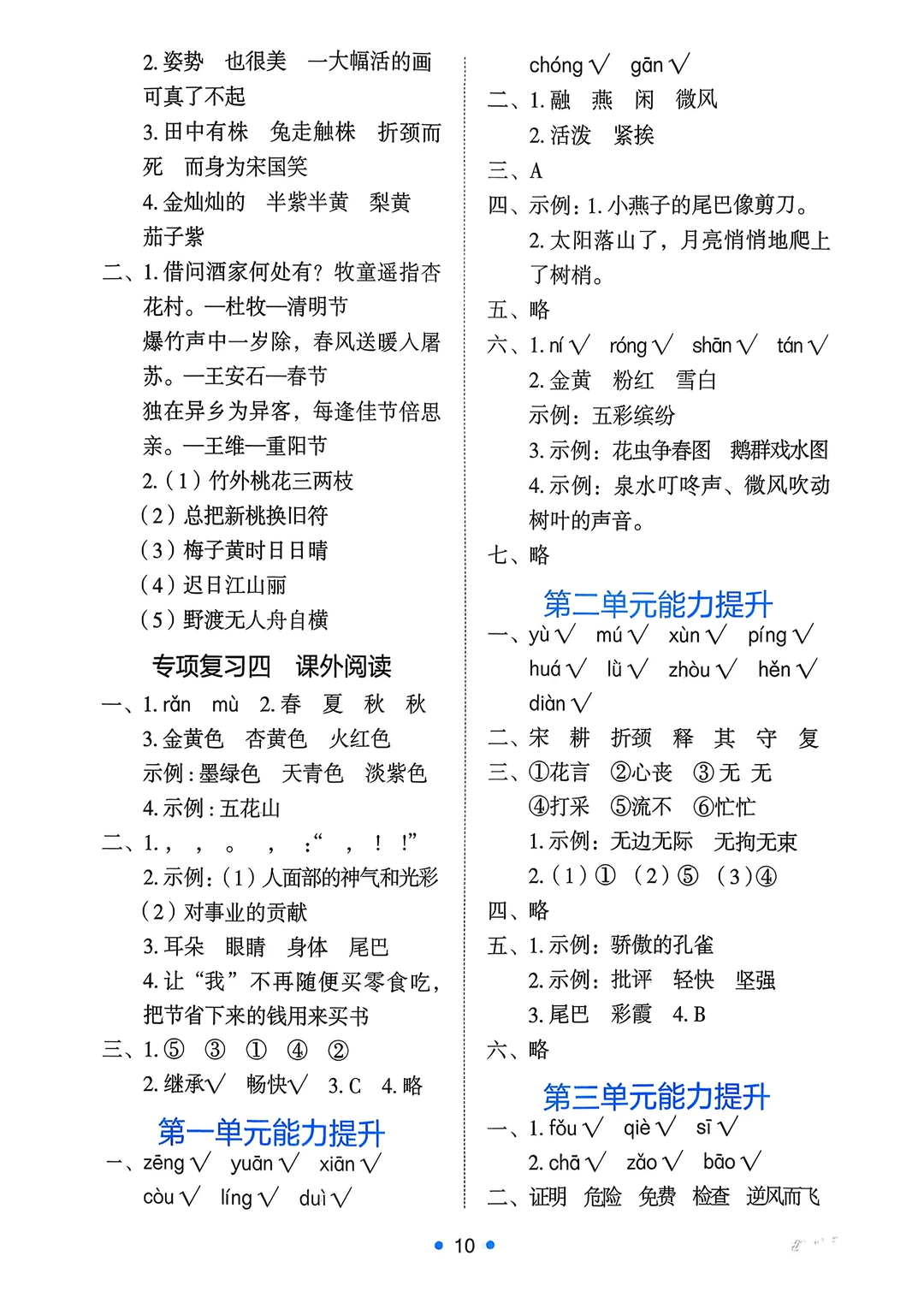三年级下语文《能力培养与测试》答案