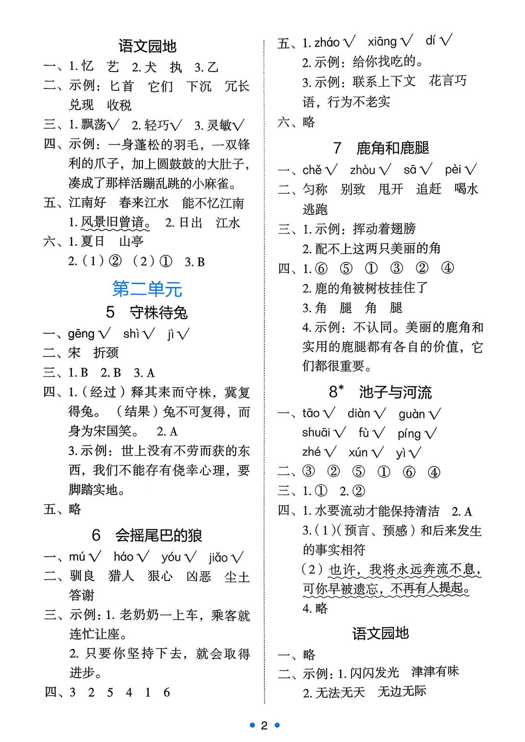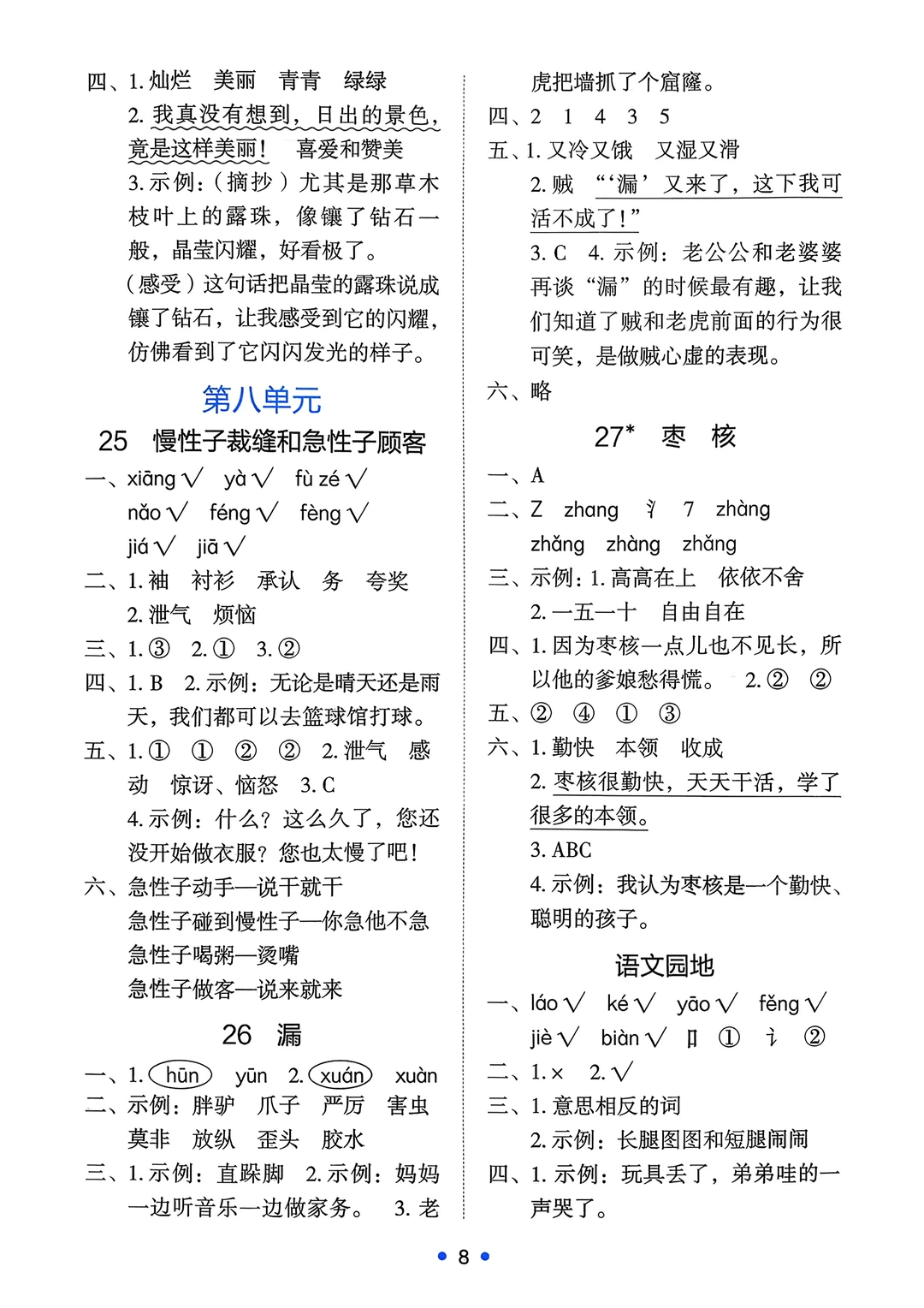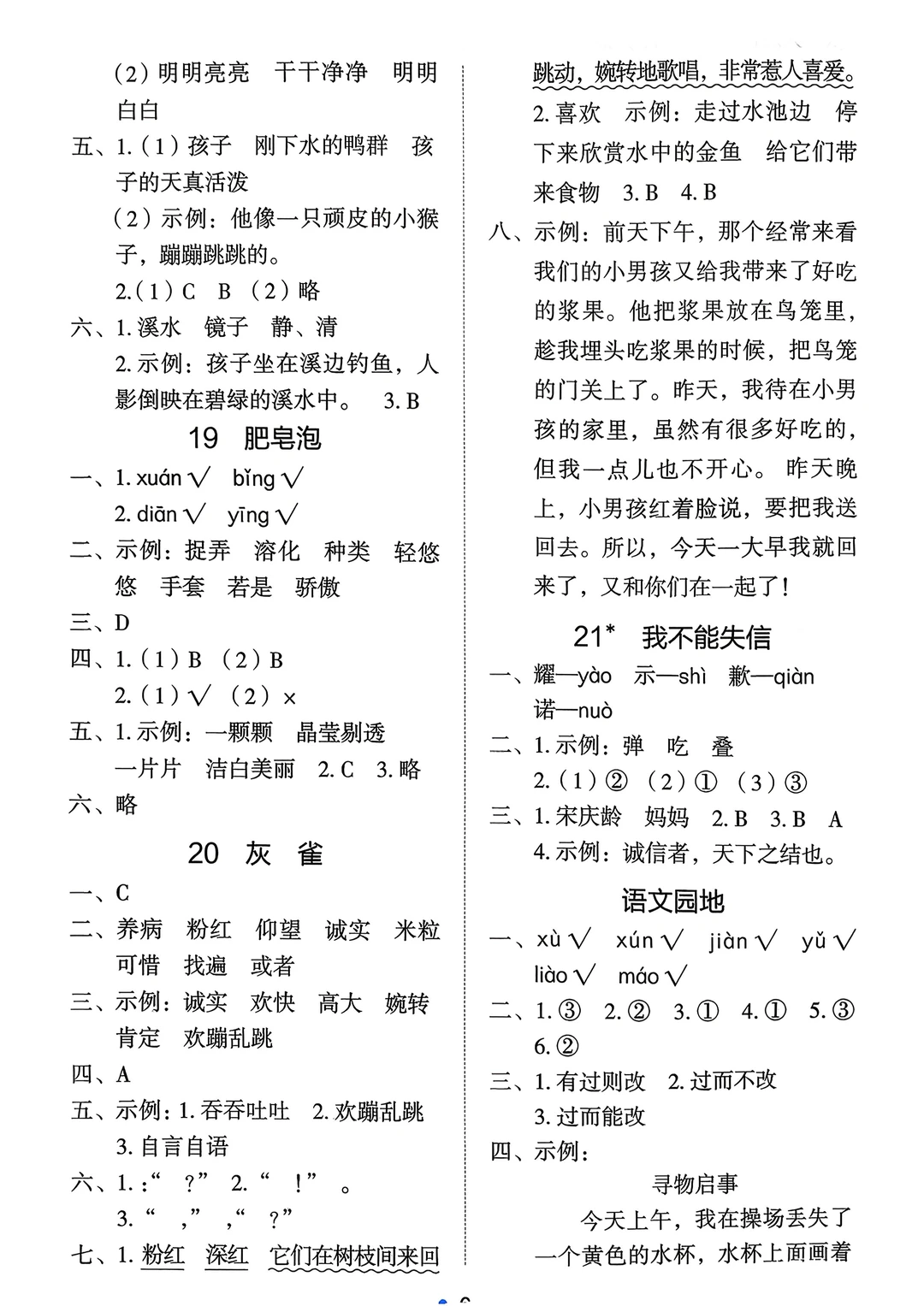 三年级下语文《能力培养与测试》答案