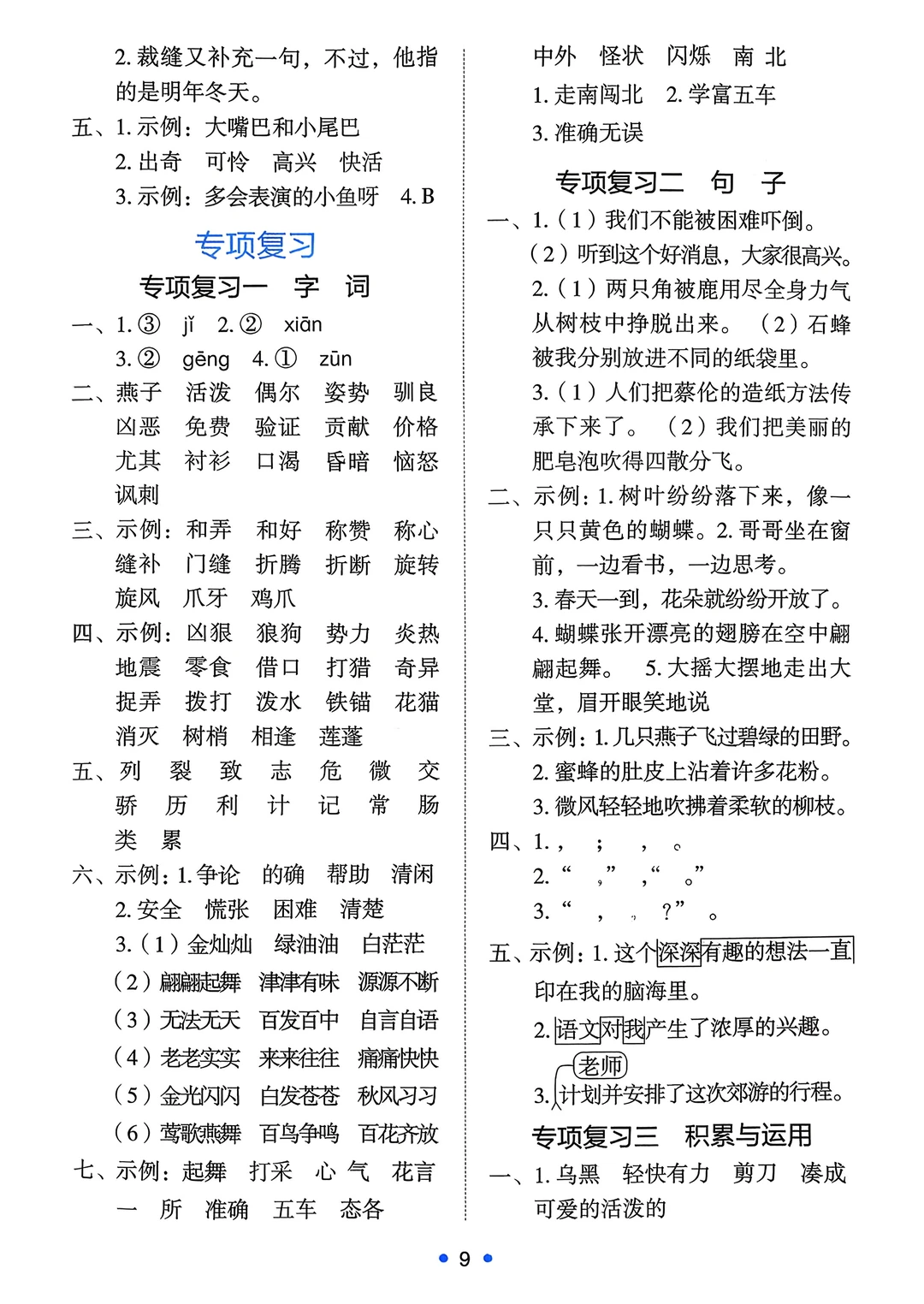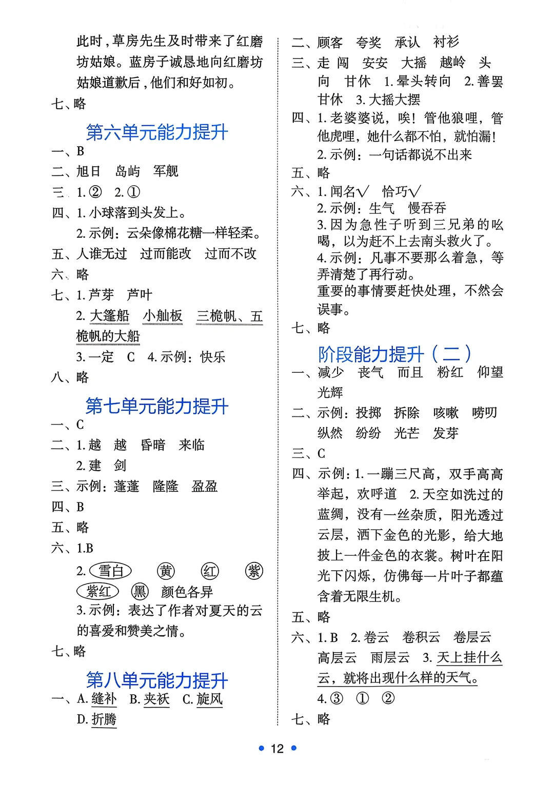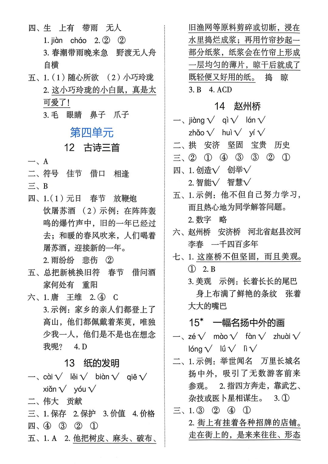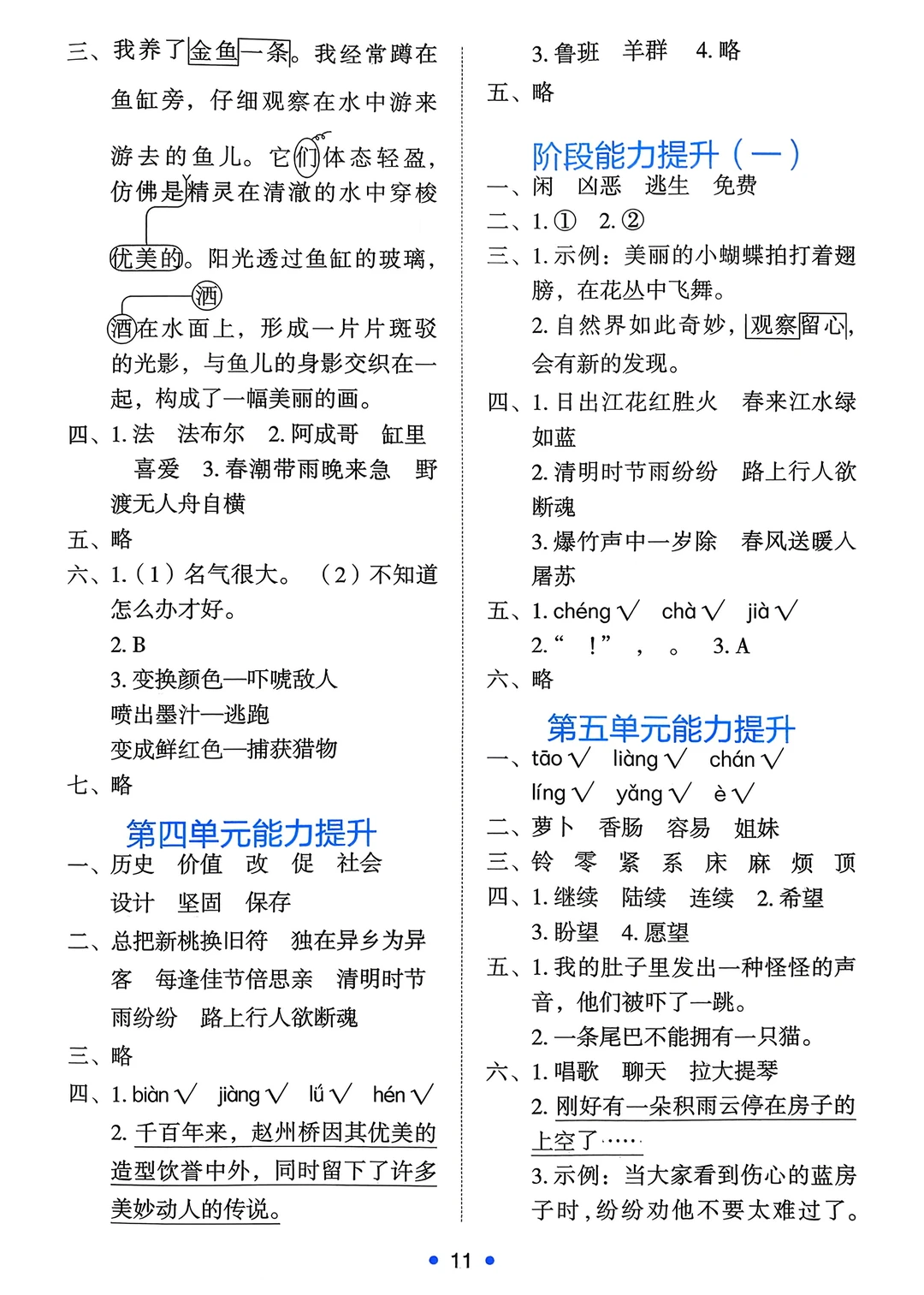 四年级下语文《能力培养与测试》答案