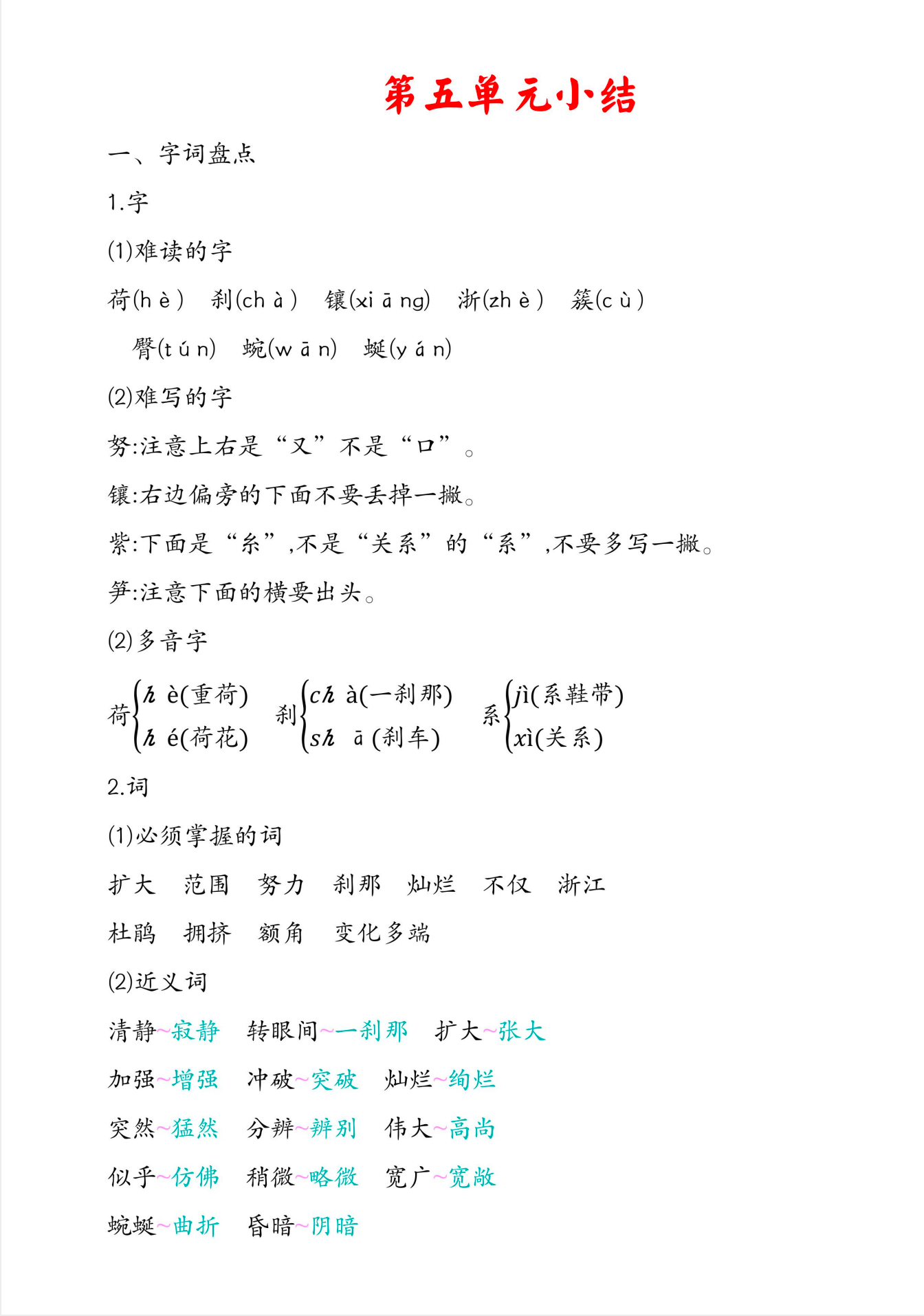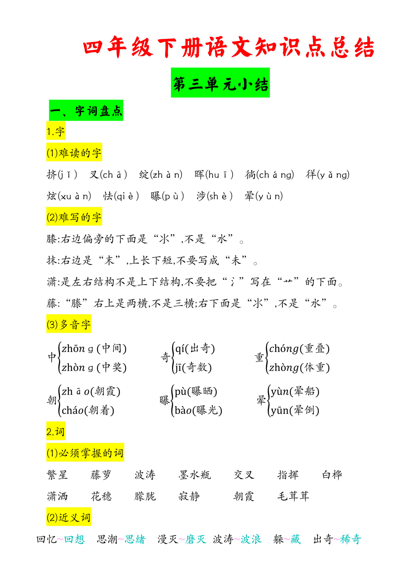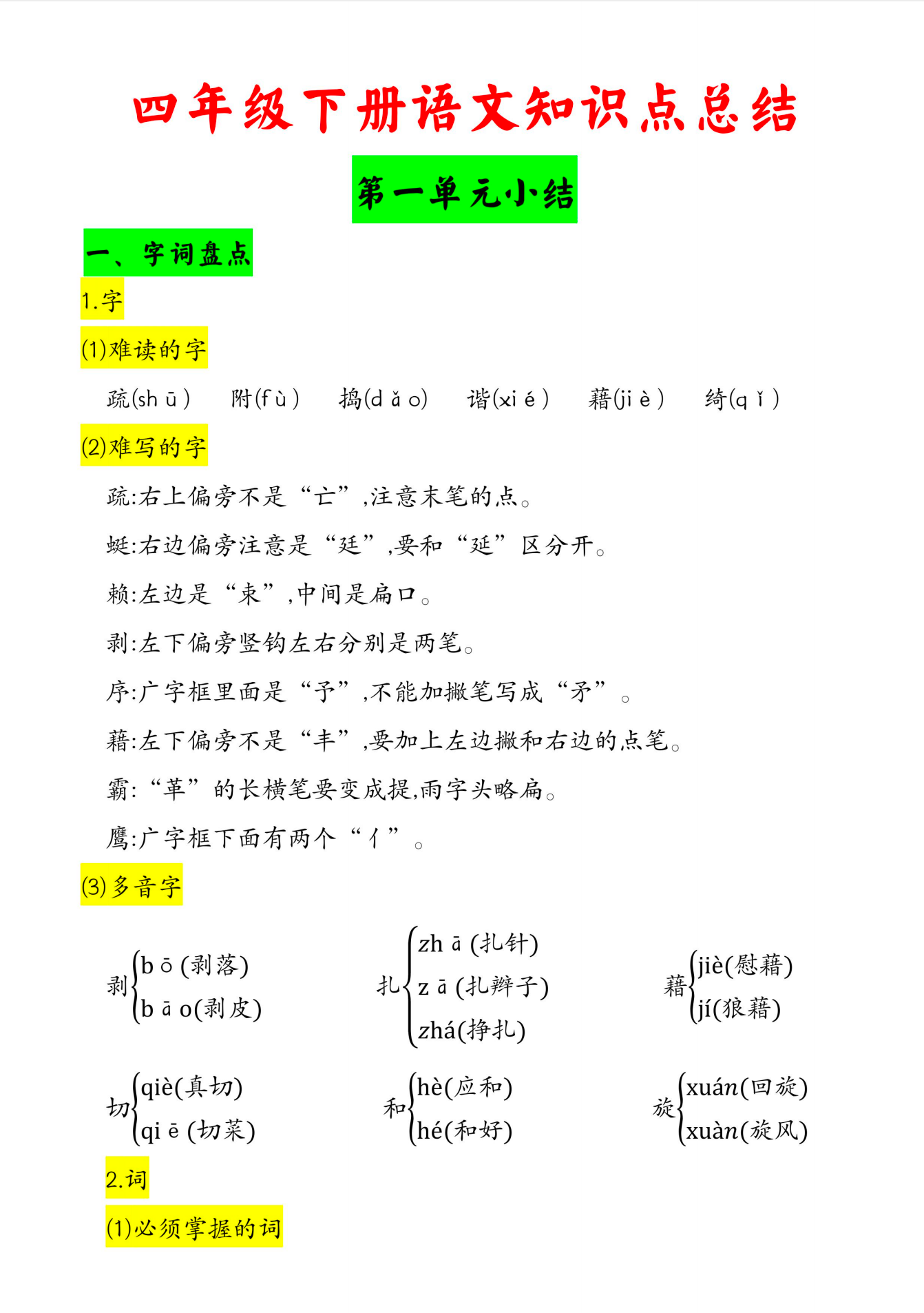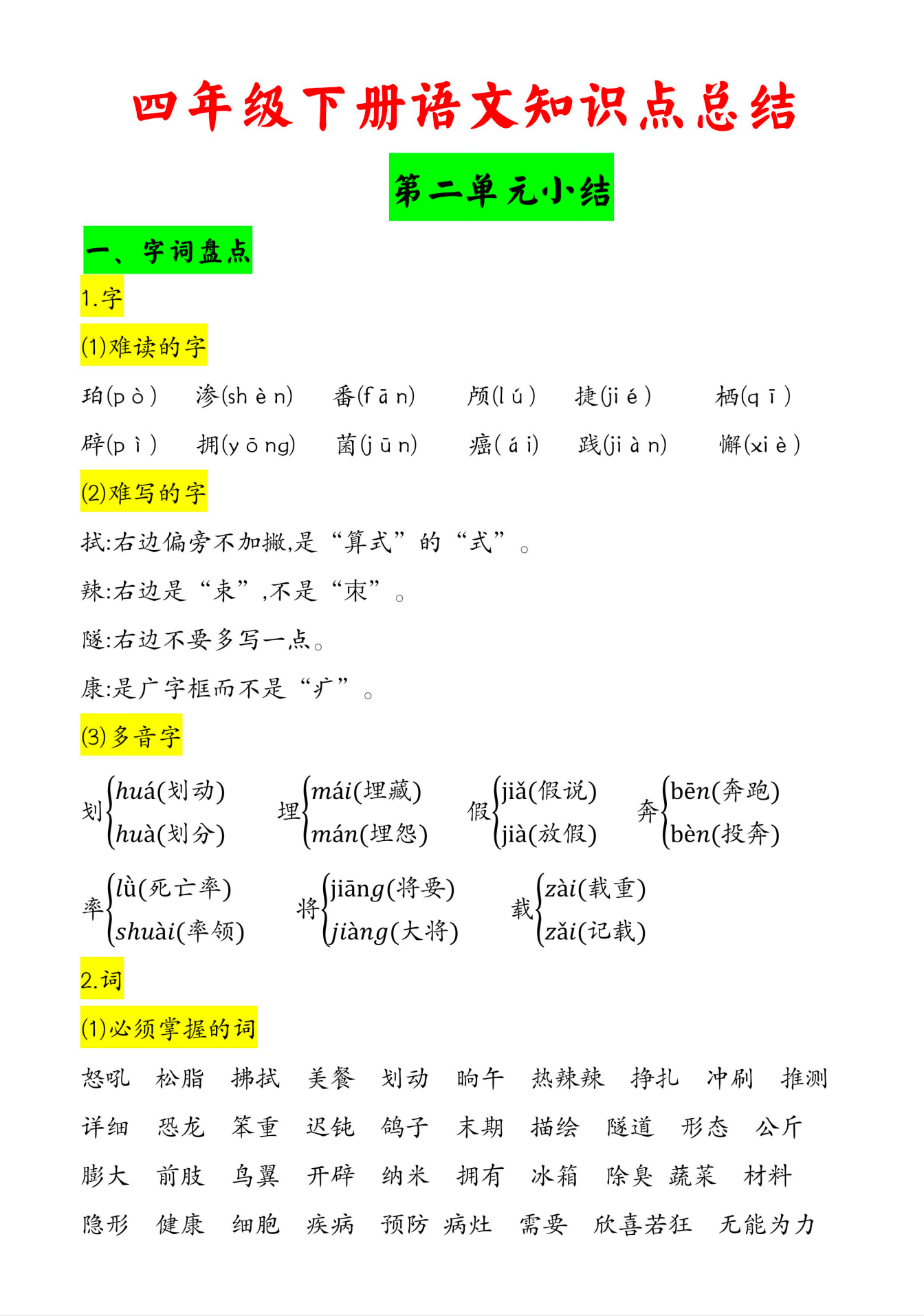 四年级下册语文知识点总结