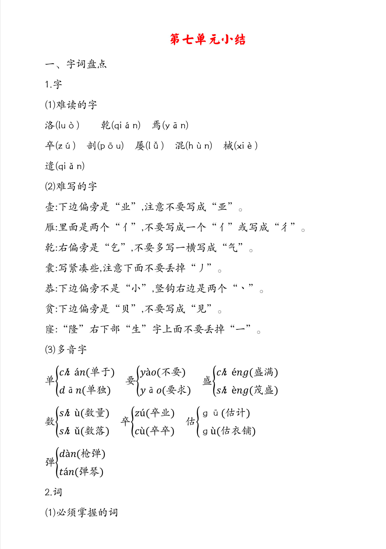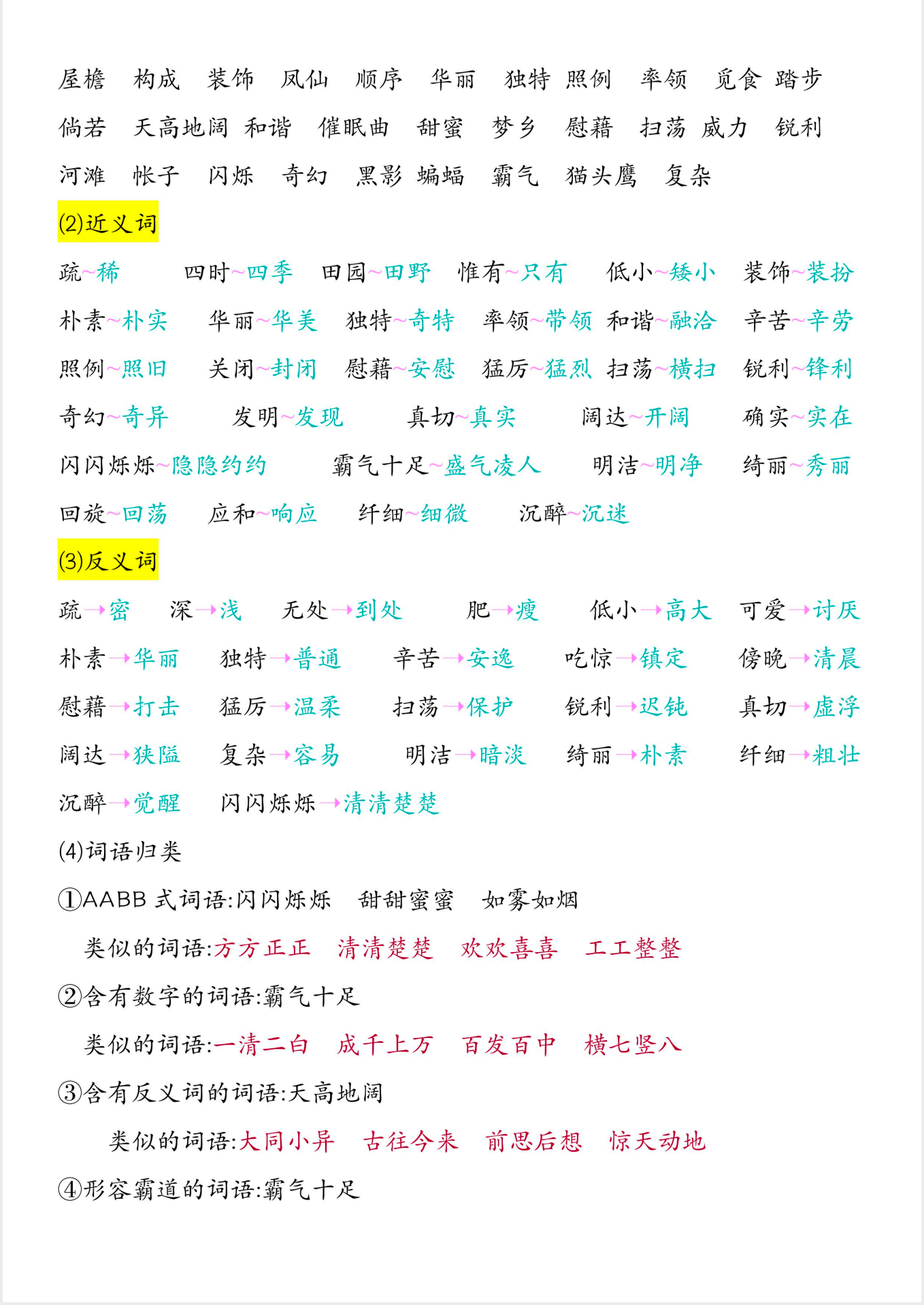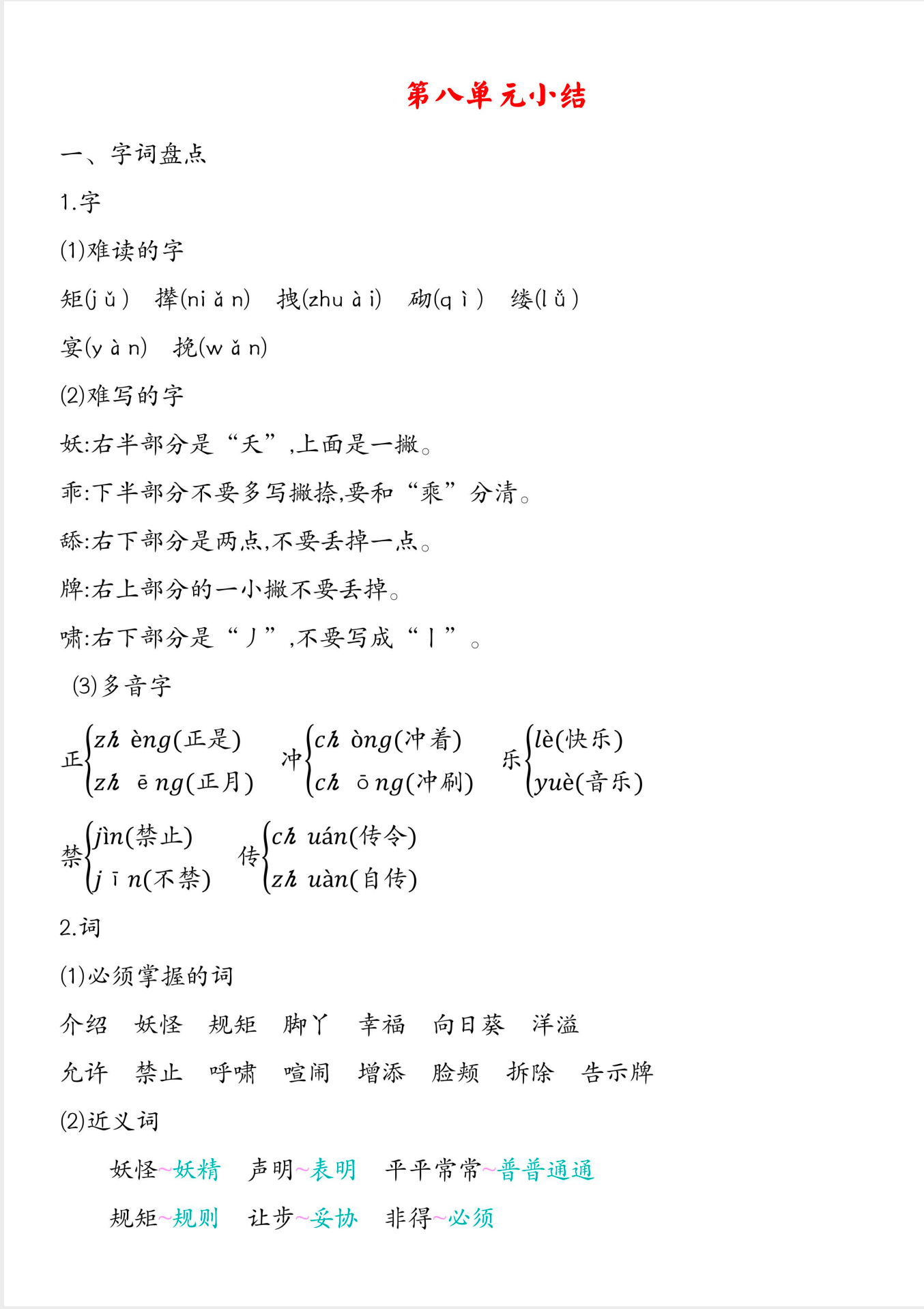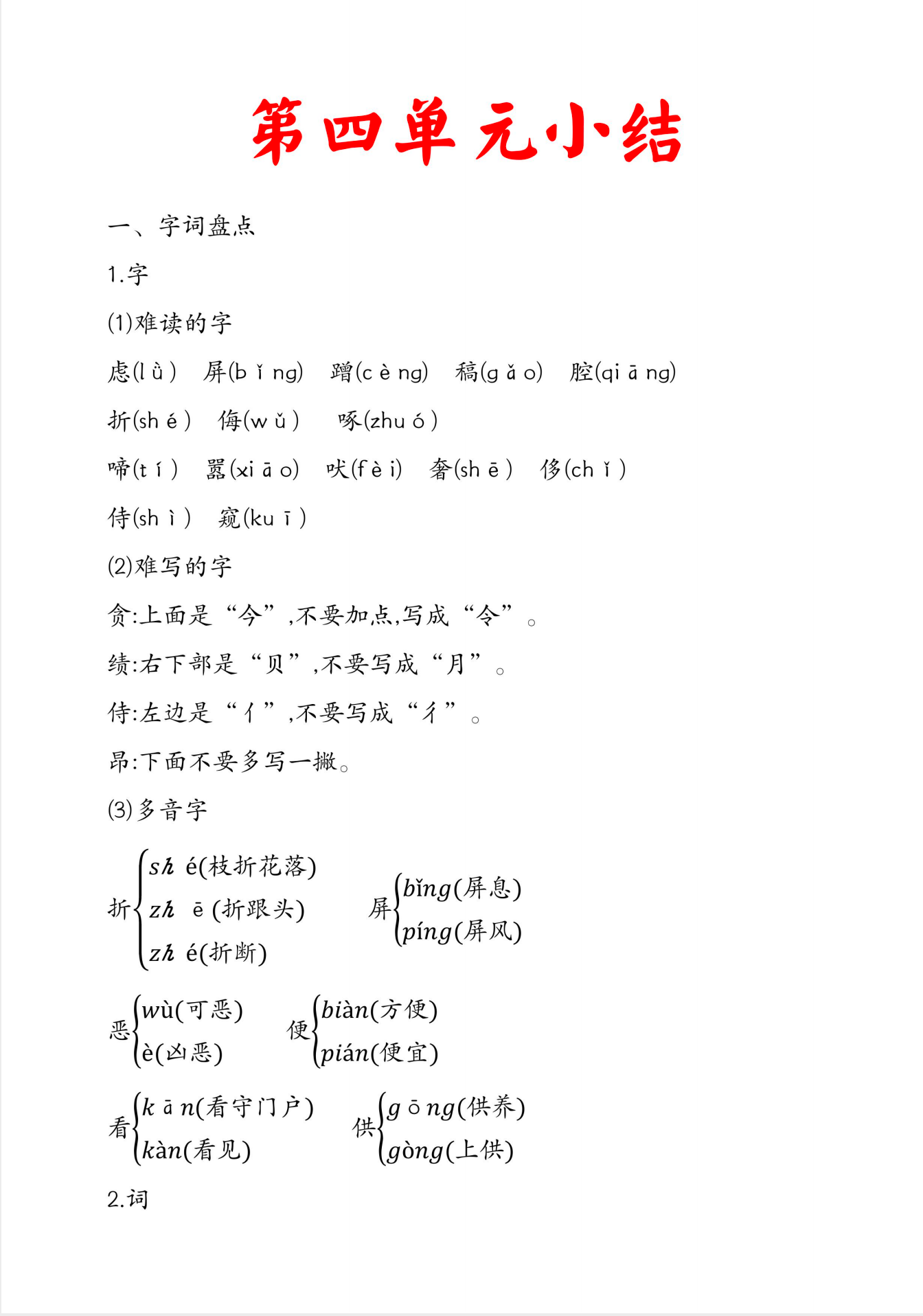 四年级下册语文知识点总结