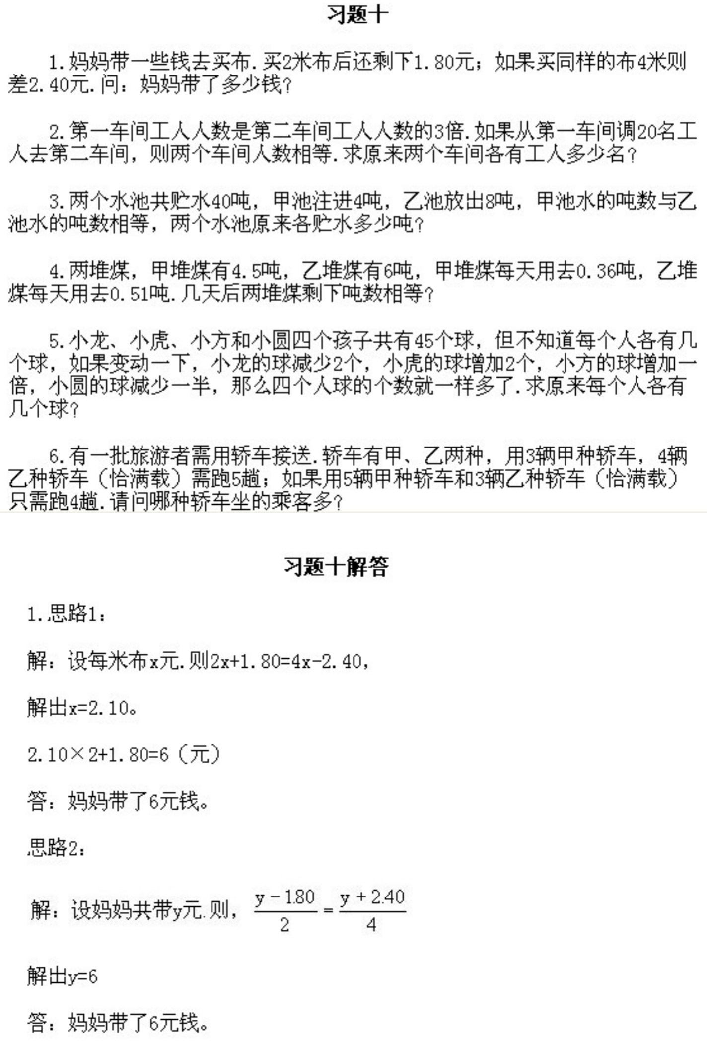 五年级上册奥数第10课《列方程解应用题》&试题