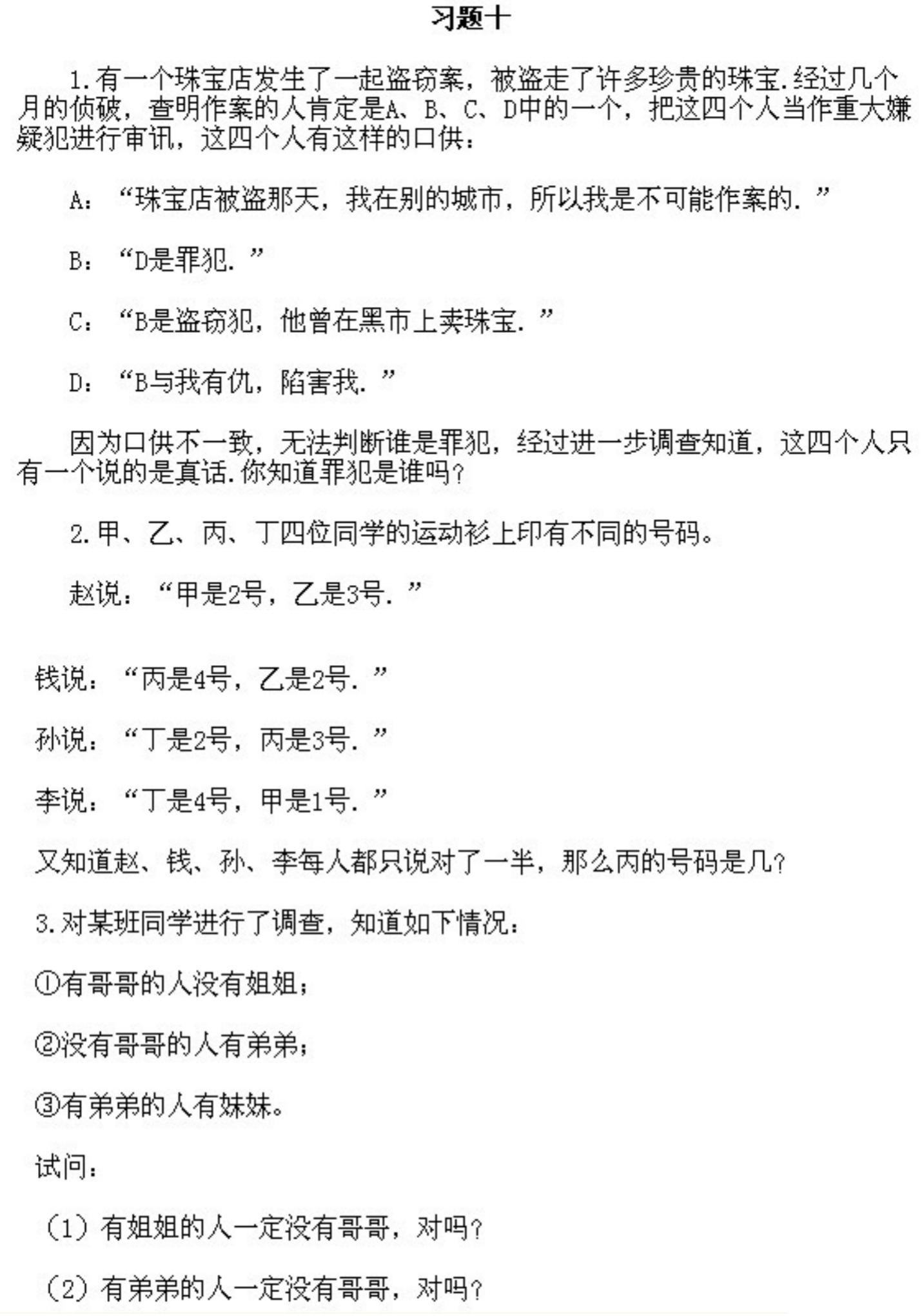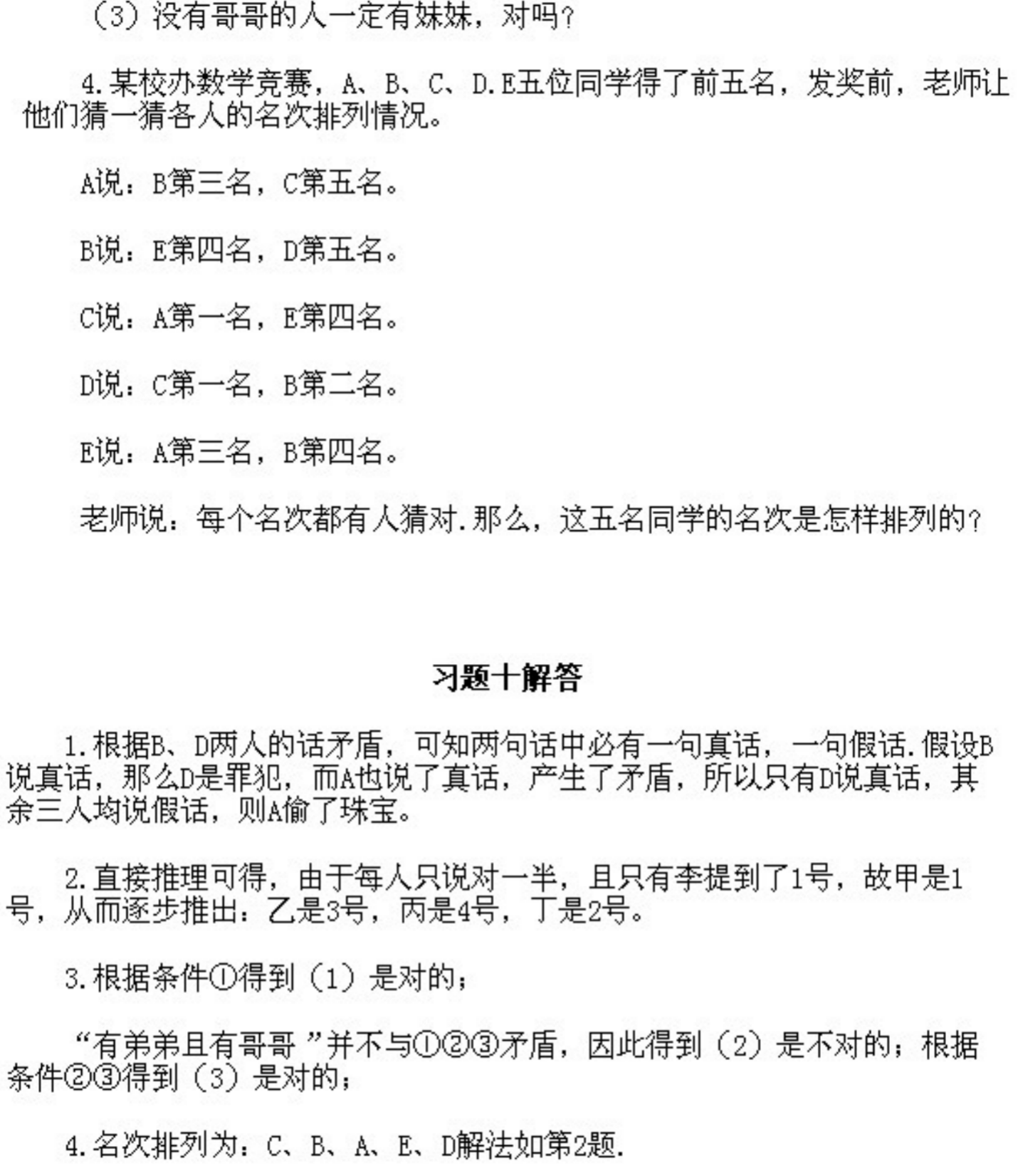 五年级下册奥数第10课《逻辑推理1》&试题