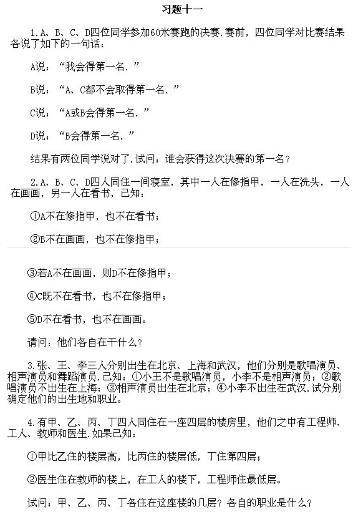 五年级下册奥数第11课《逻辑推理2》&试题