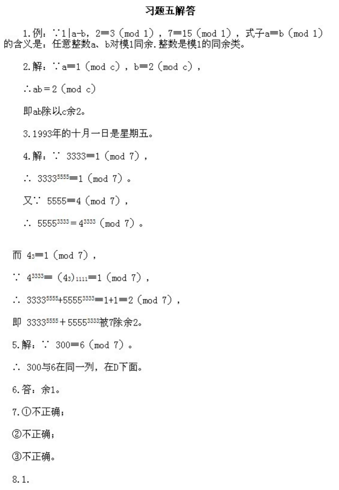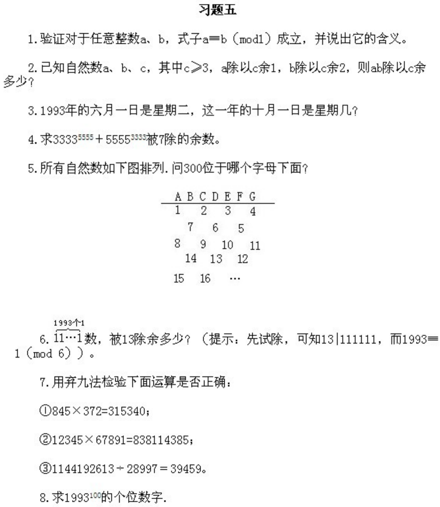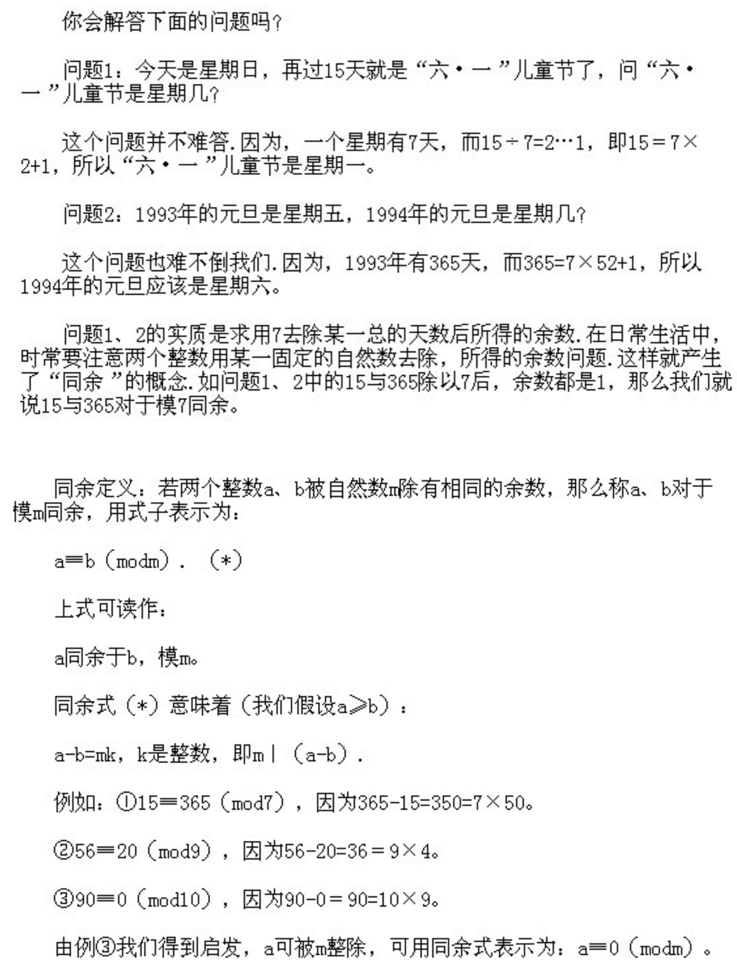 五年级下册奥数第5课《同余数的概念和性质》&试题
