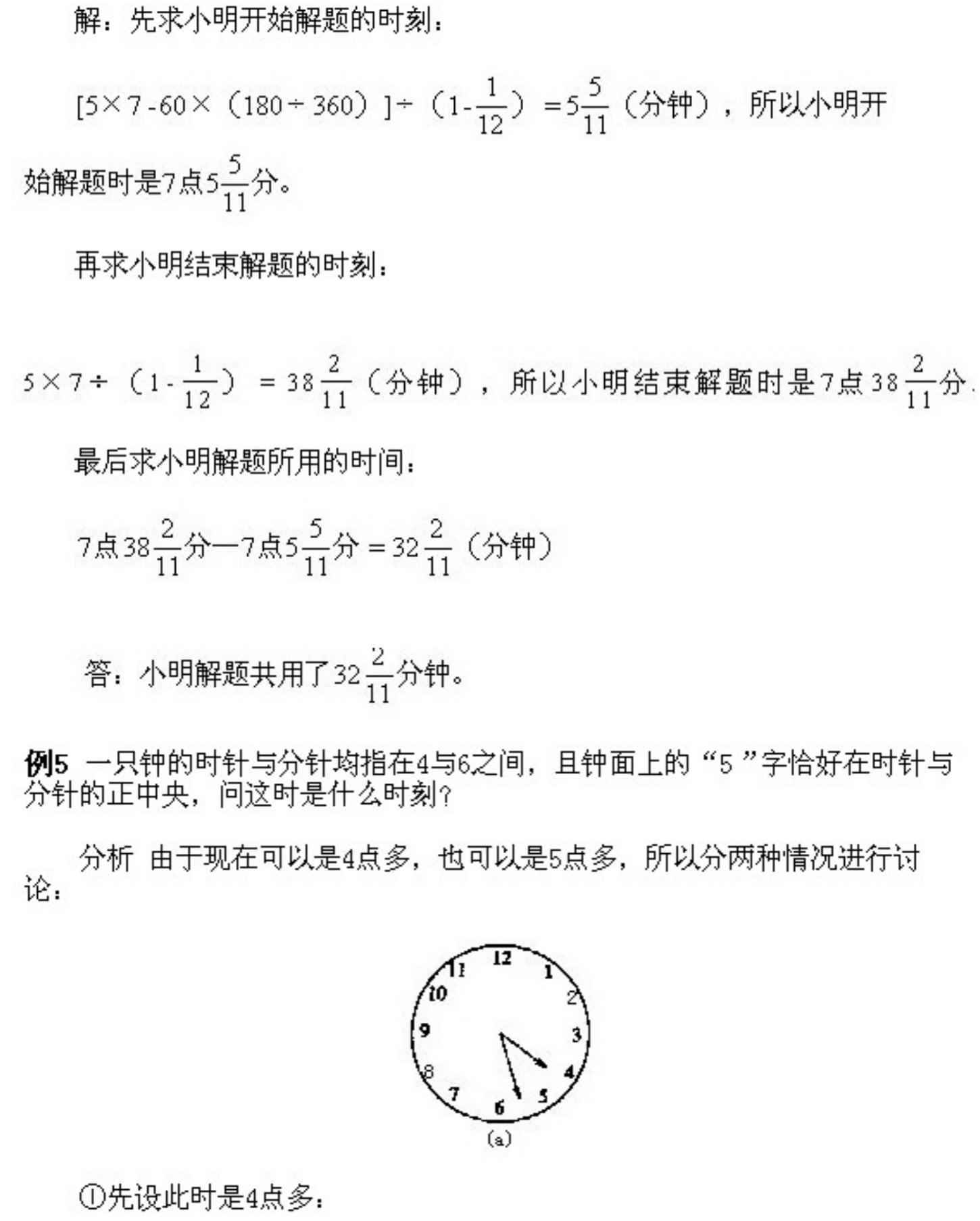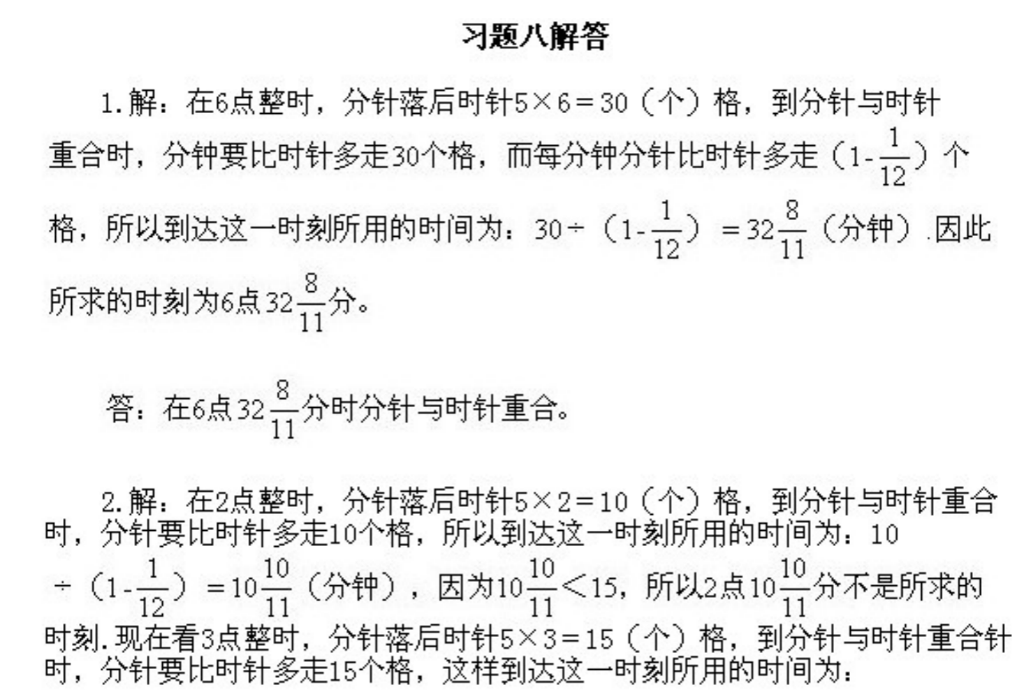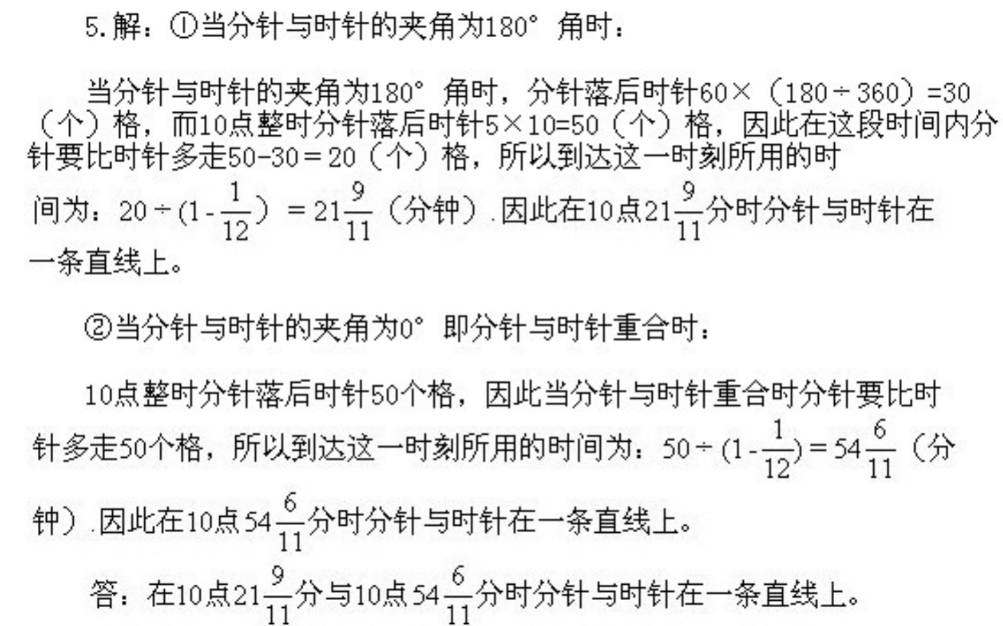 五年级下册奥数第8课《时钟问题》&试题