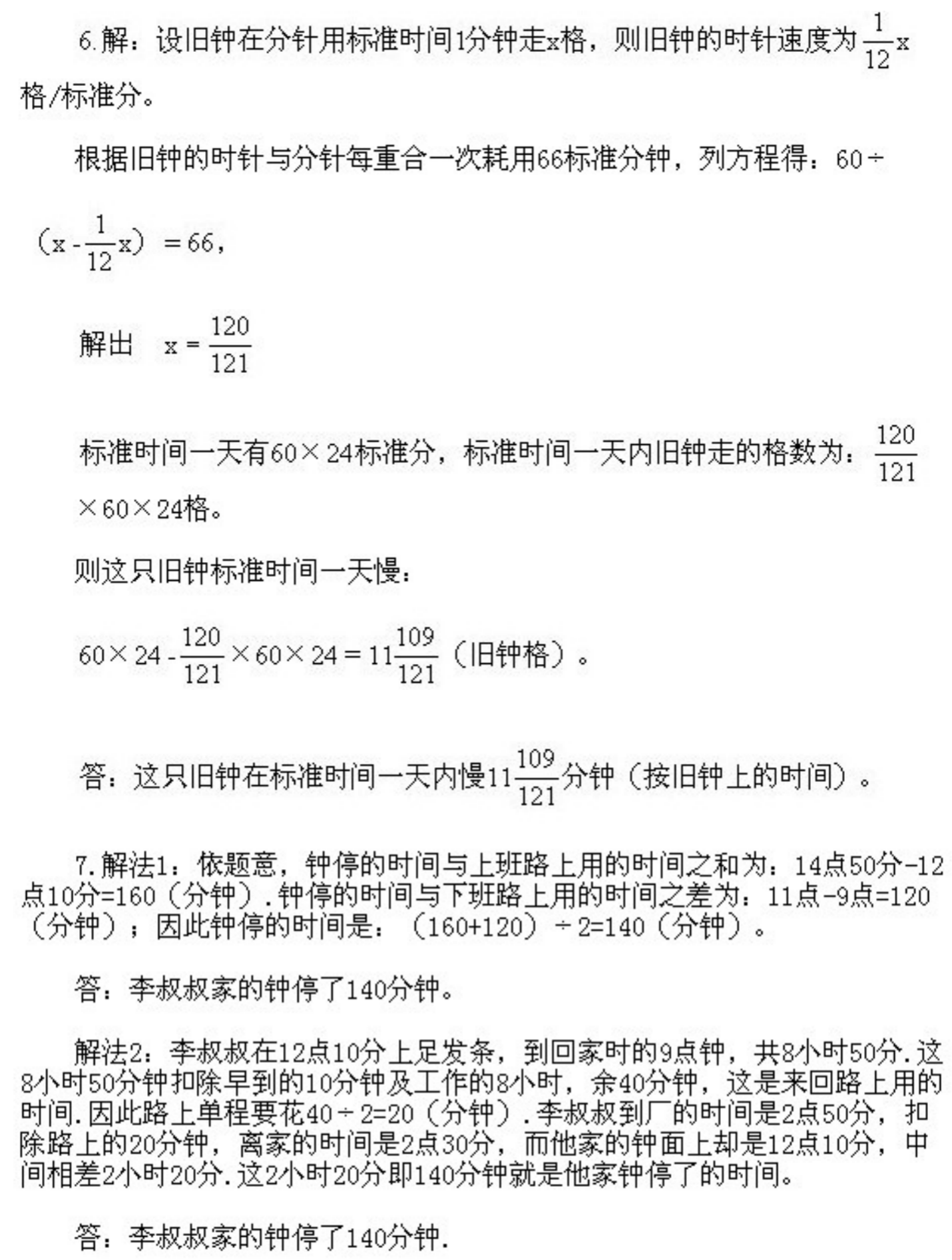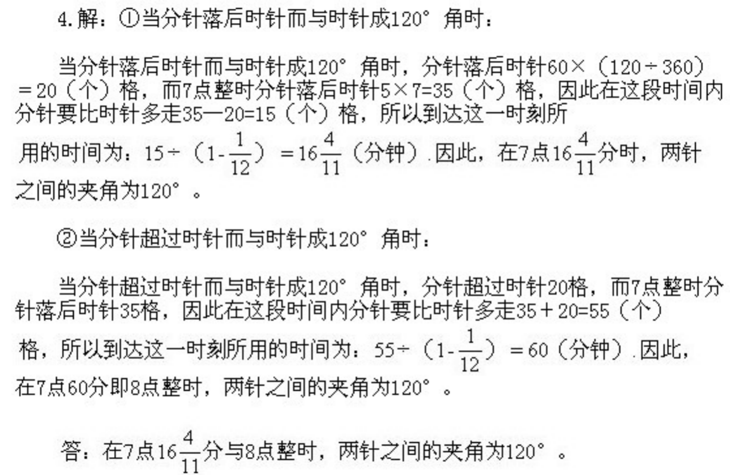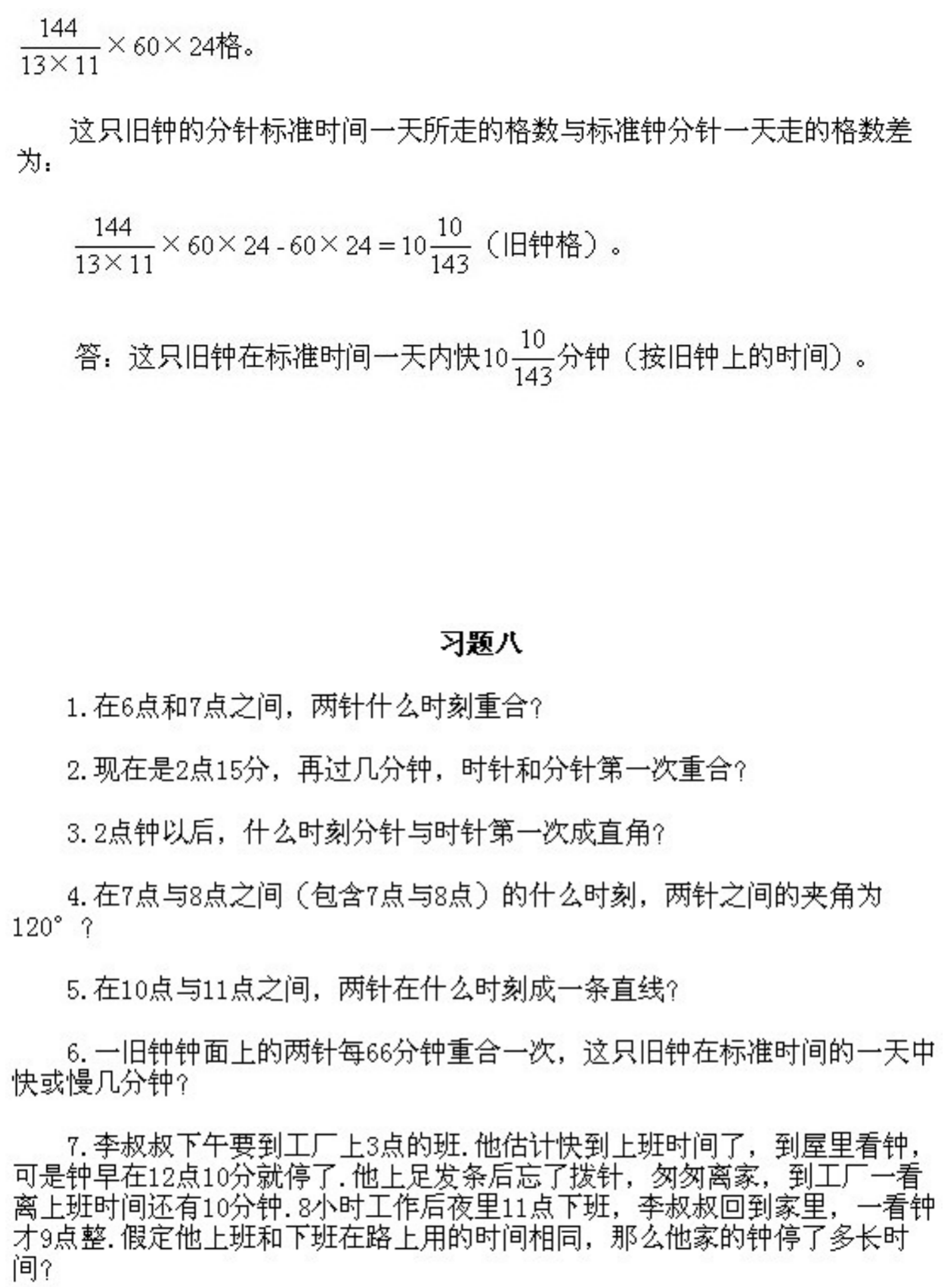 五年级下册奥数第8课《时钟问题》&试题