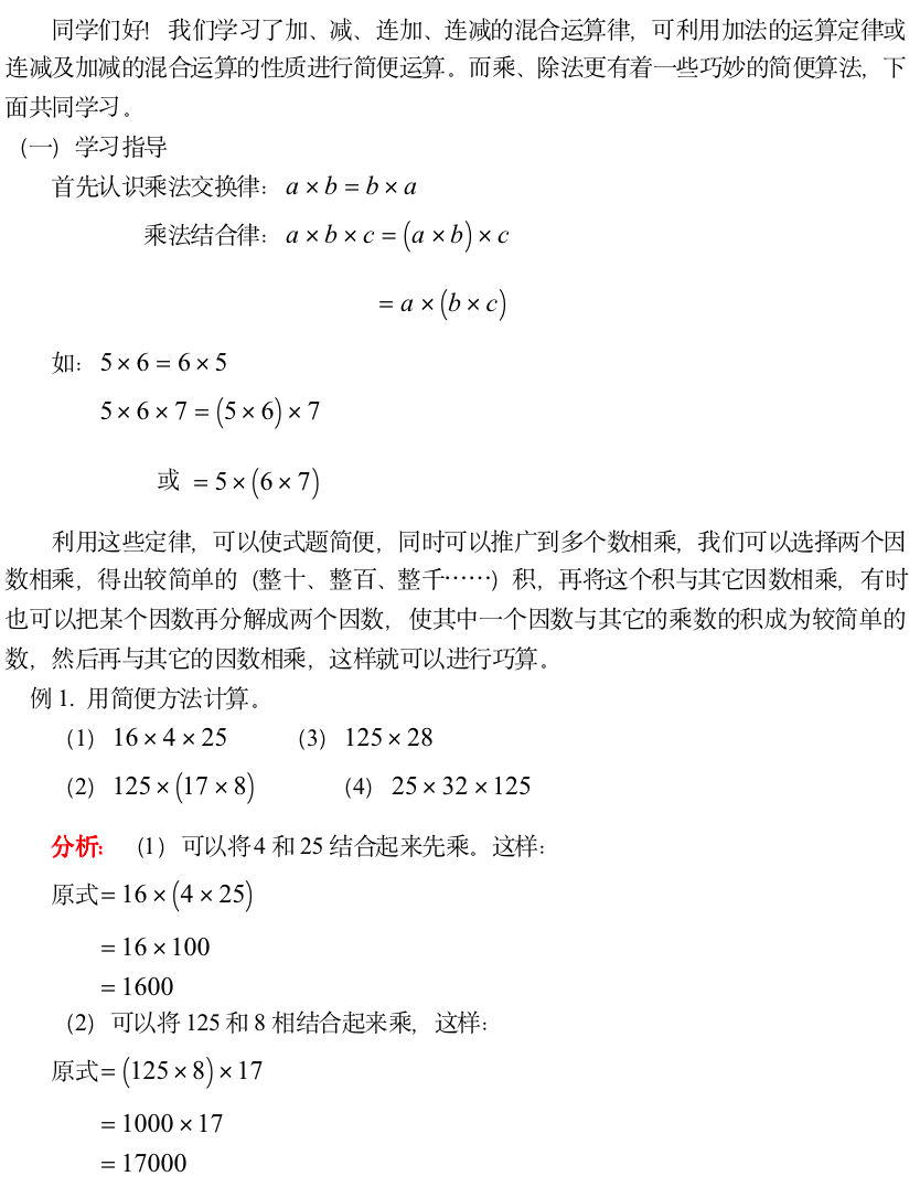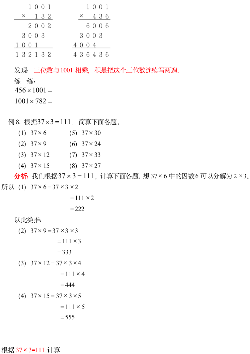 小学奥数-乘法中的巧算