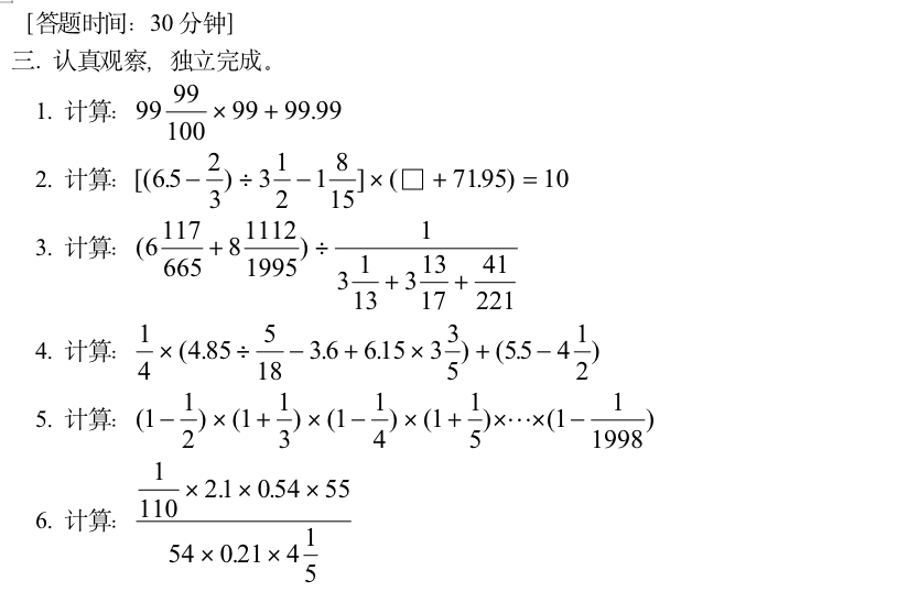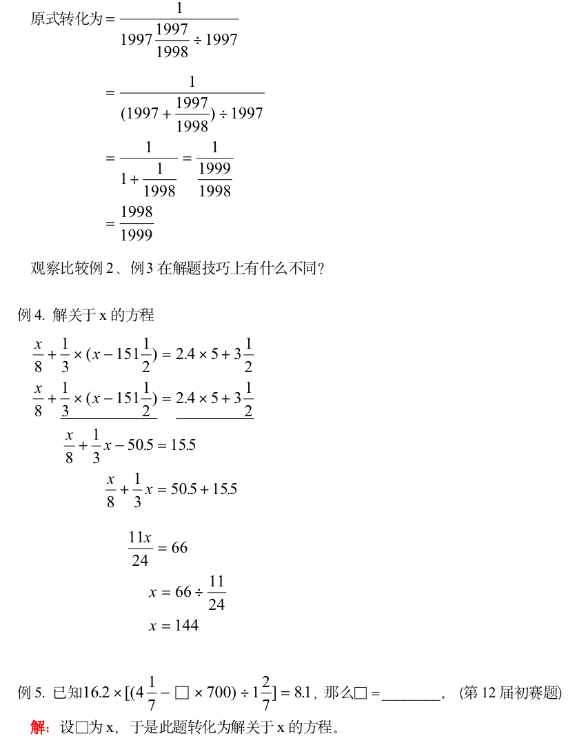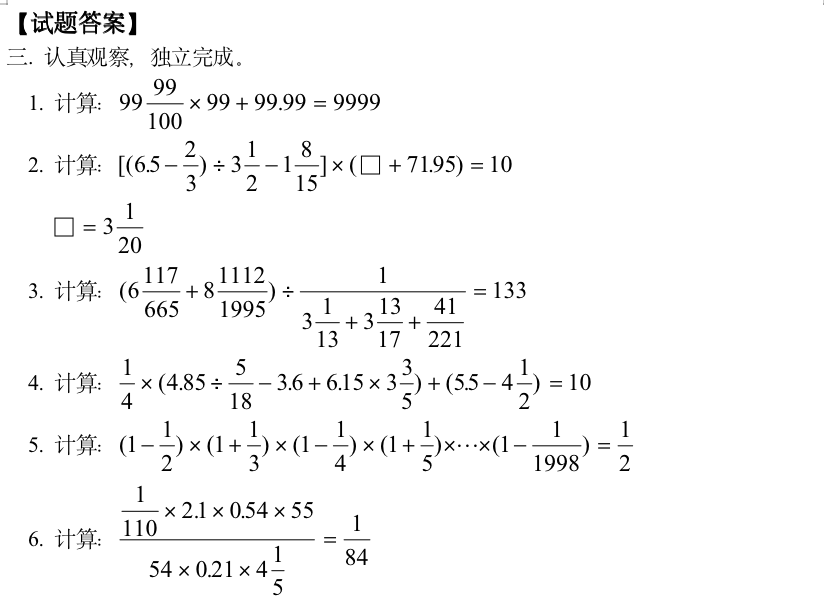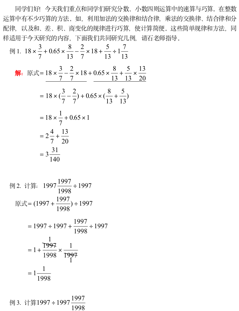 小学奥数-分数、小数四则运算中的巧算(一)