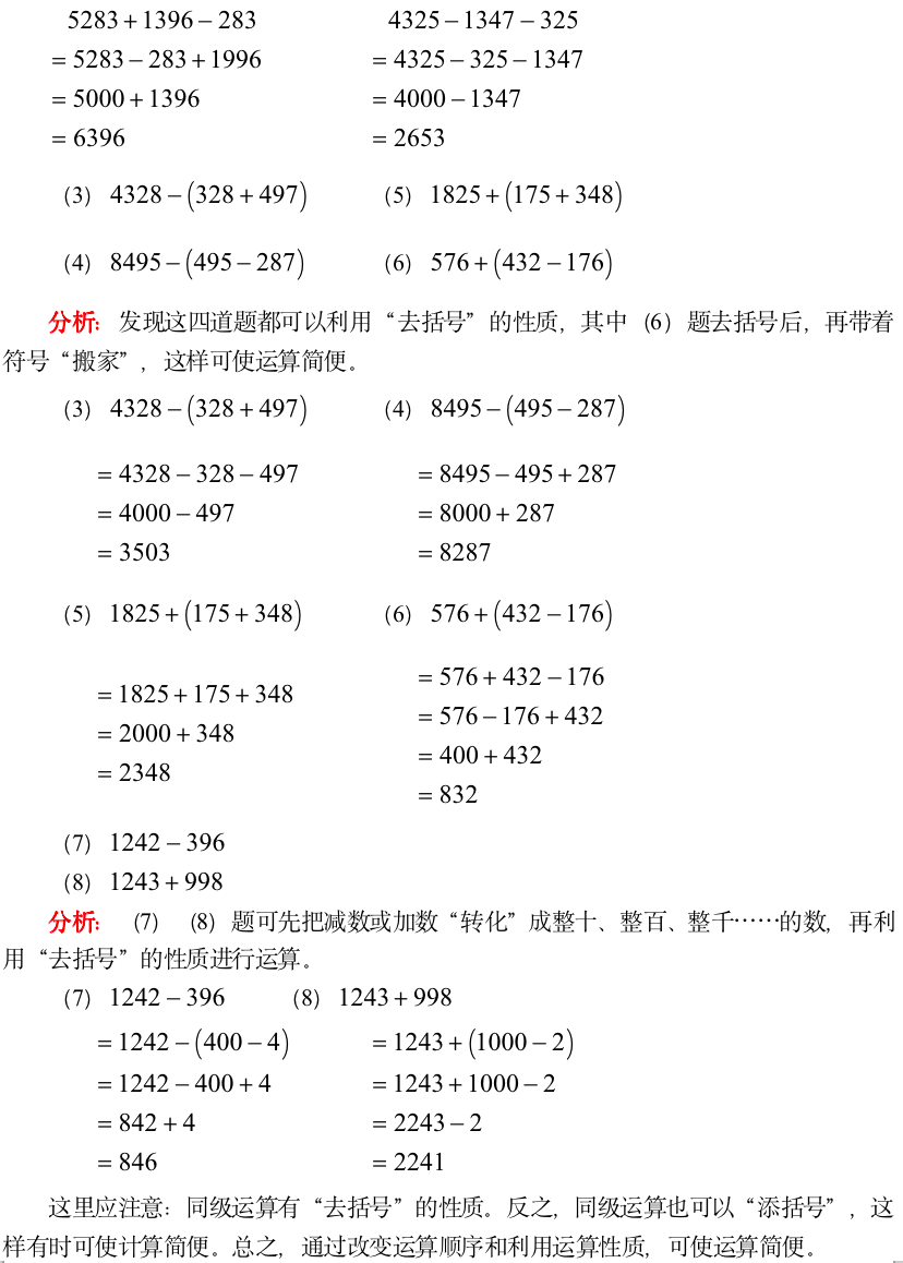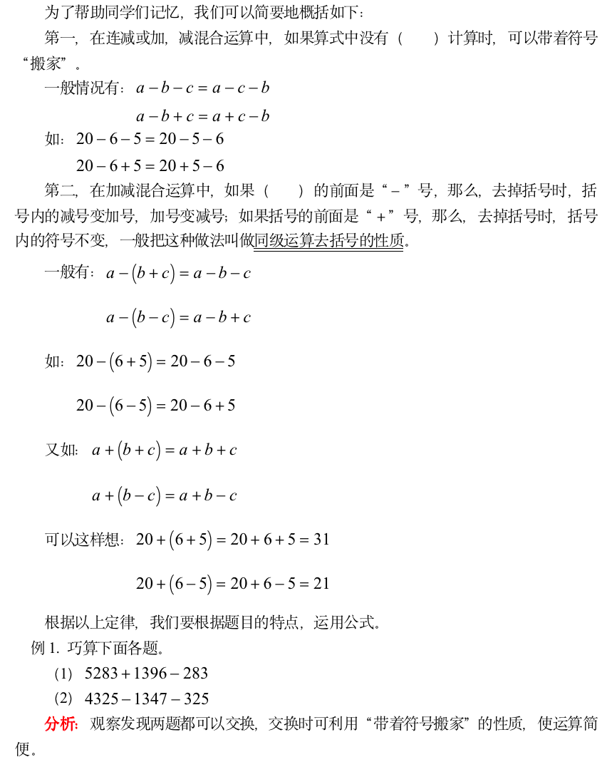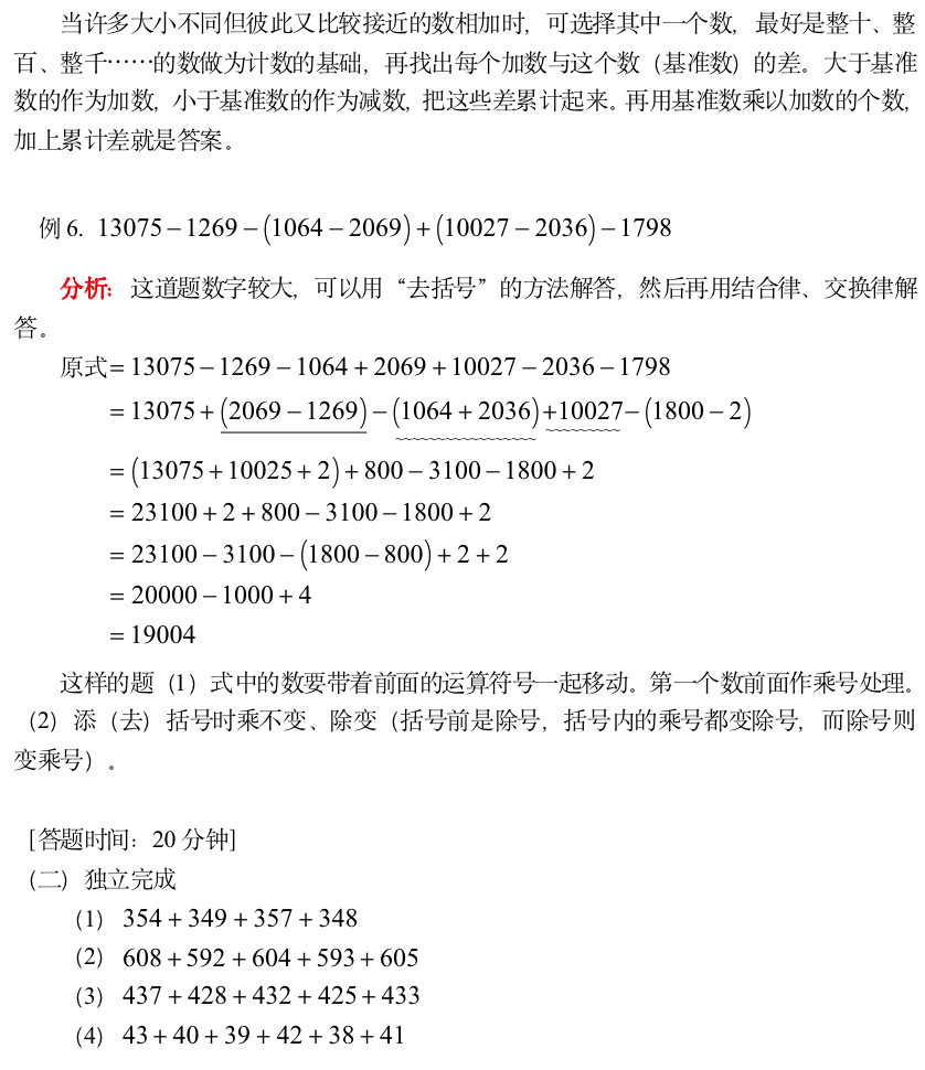 小学奥数-减法中的巧算