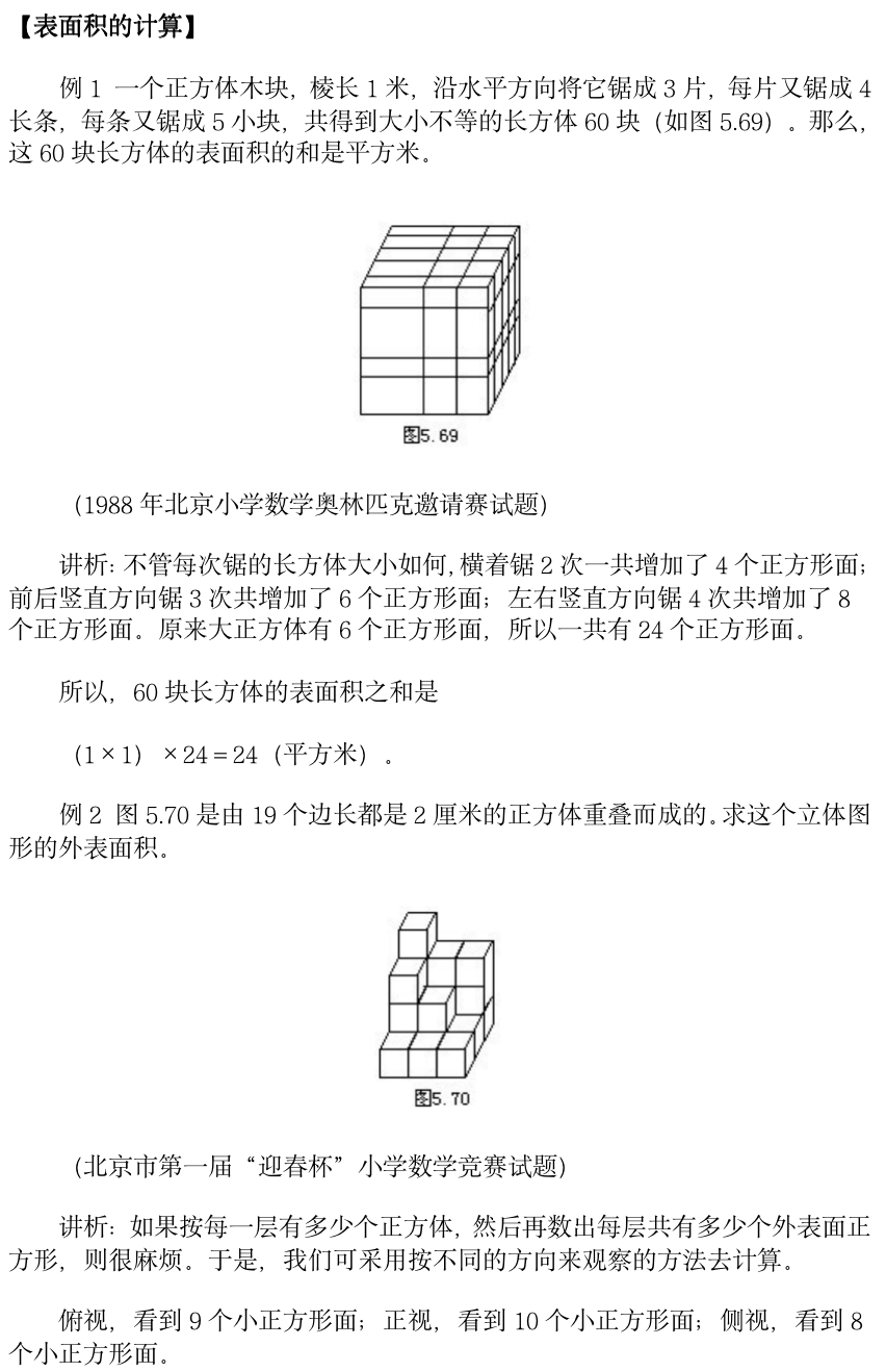 小学奥数-立体图形的计算