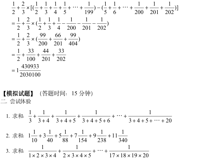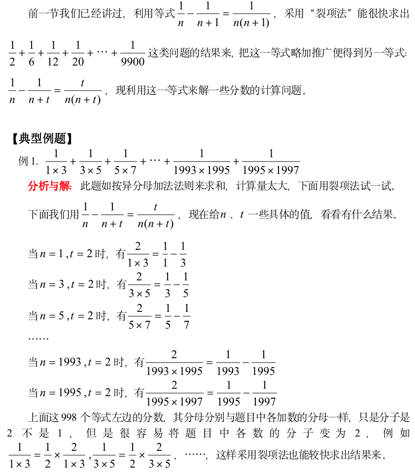 小学奥数-裂项法(二)