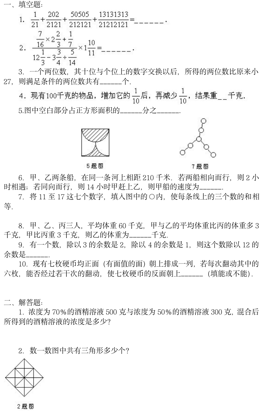 小学奥数模拟试卷1
