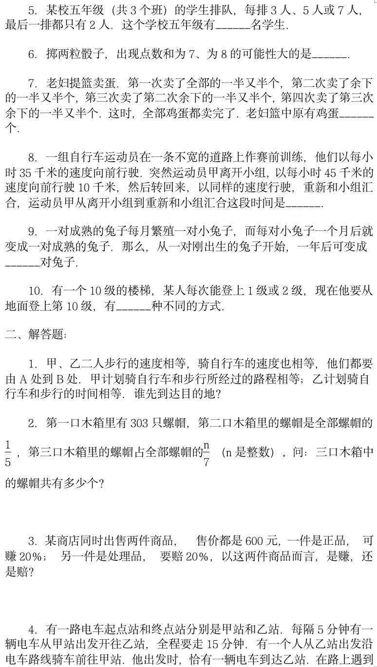 小学奥数模拟试卷10