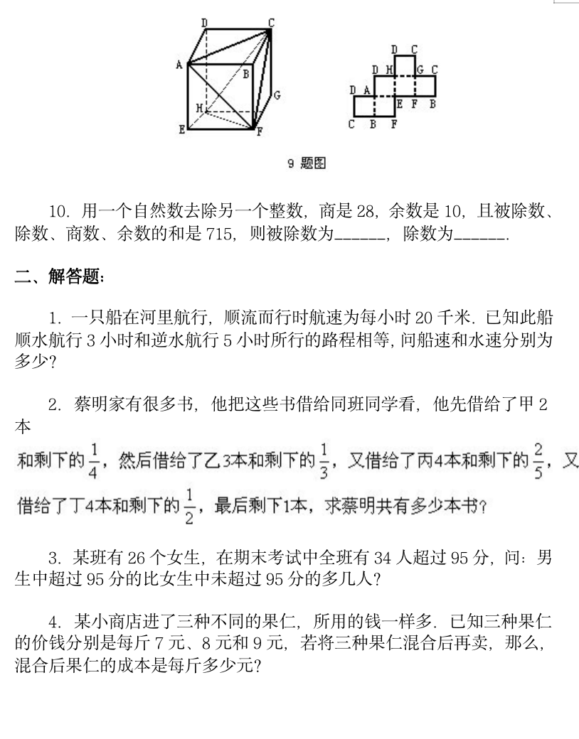 小学奥数模拟试卷40