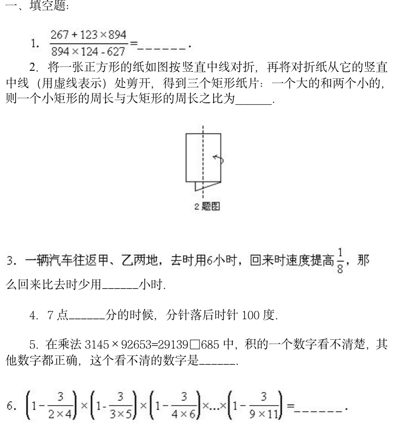 小学奥数模拟试卷6
