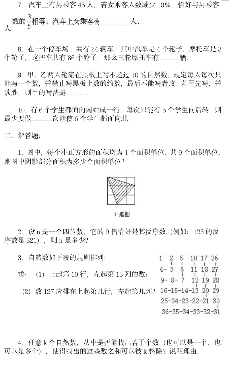 小学奥数模拟试卷7