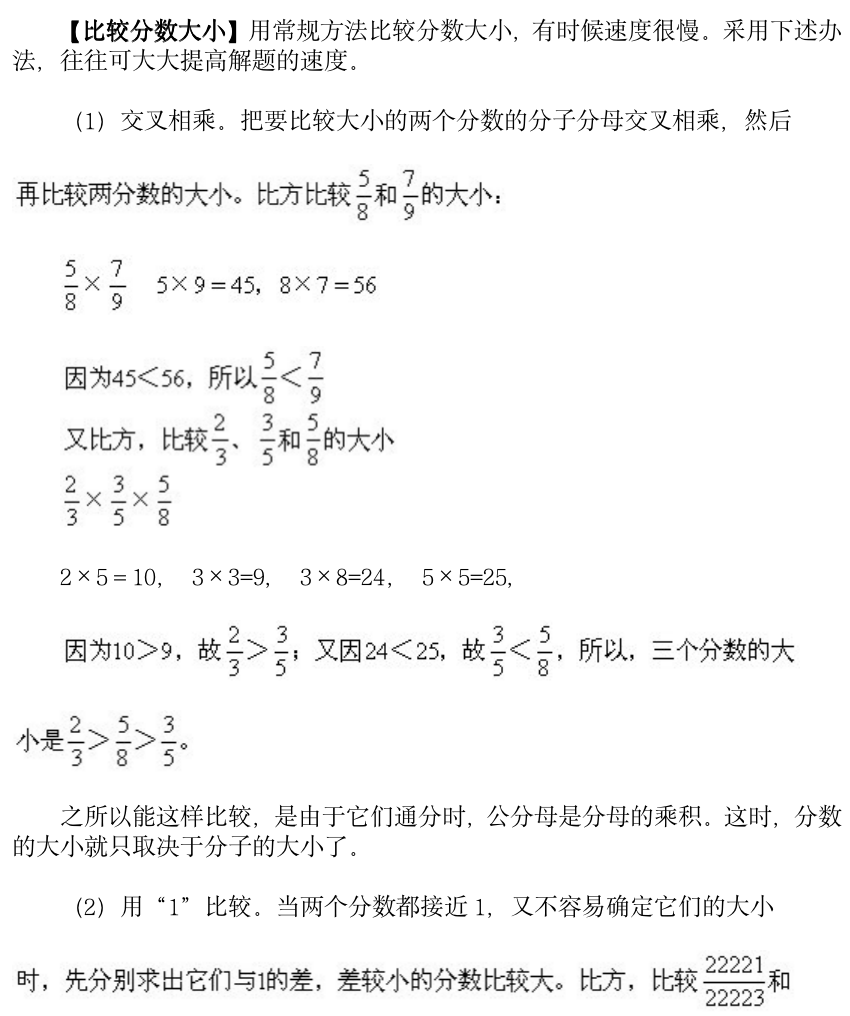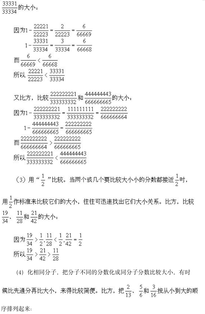 小学奥数-分数、小数的比较