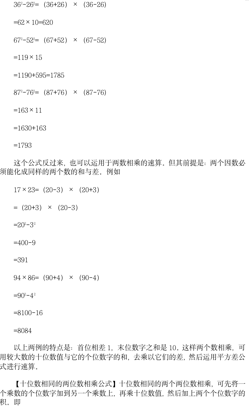 小学奥数-速算公式