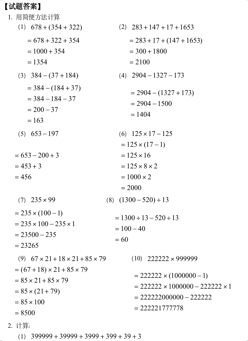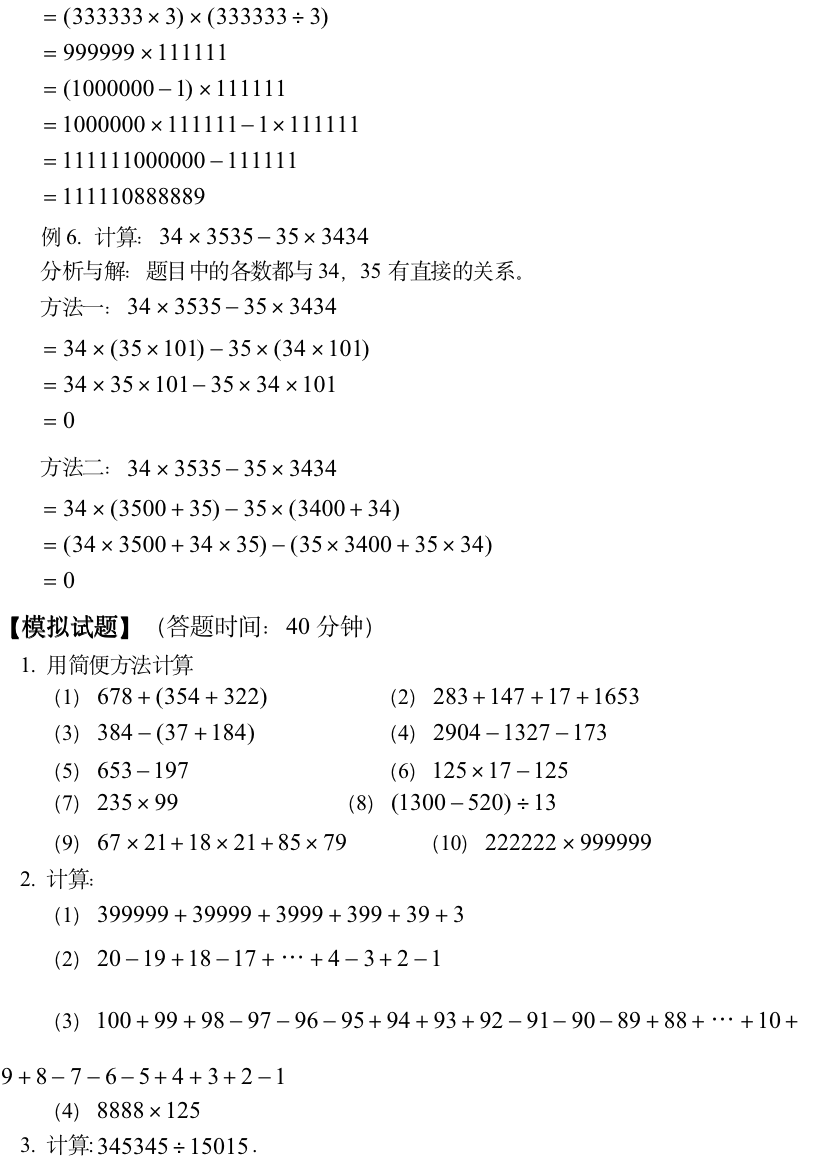 小学奥数-速算与巧算(一)